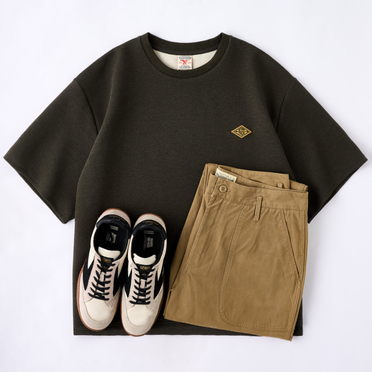 ワッペンの黄色が全体のダークな色合いに映え、アクセントに。