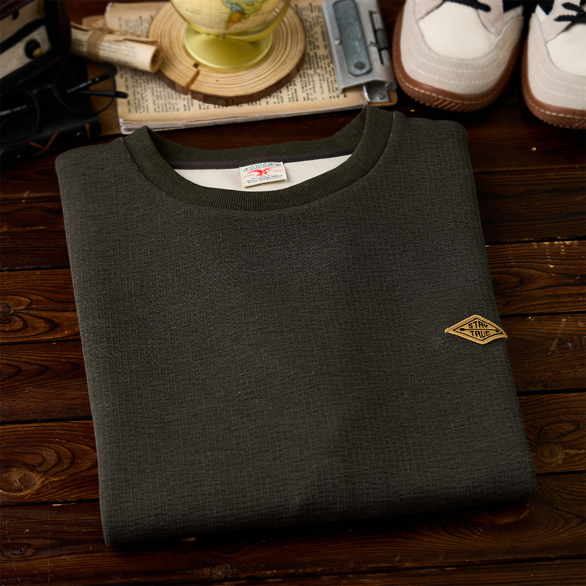 商品名称:「STAY TRUE」刺繍ワッペン カシミヤライクハーフジップハイネックスウェット