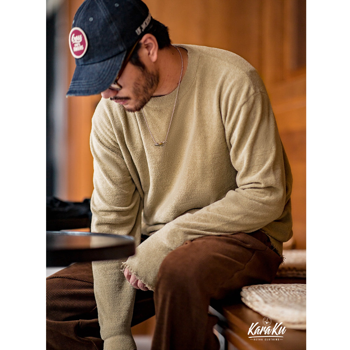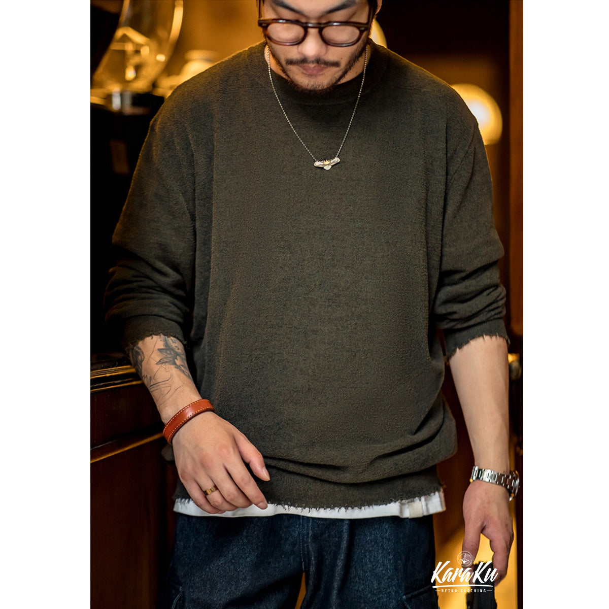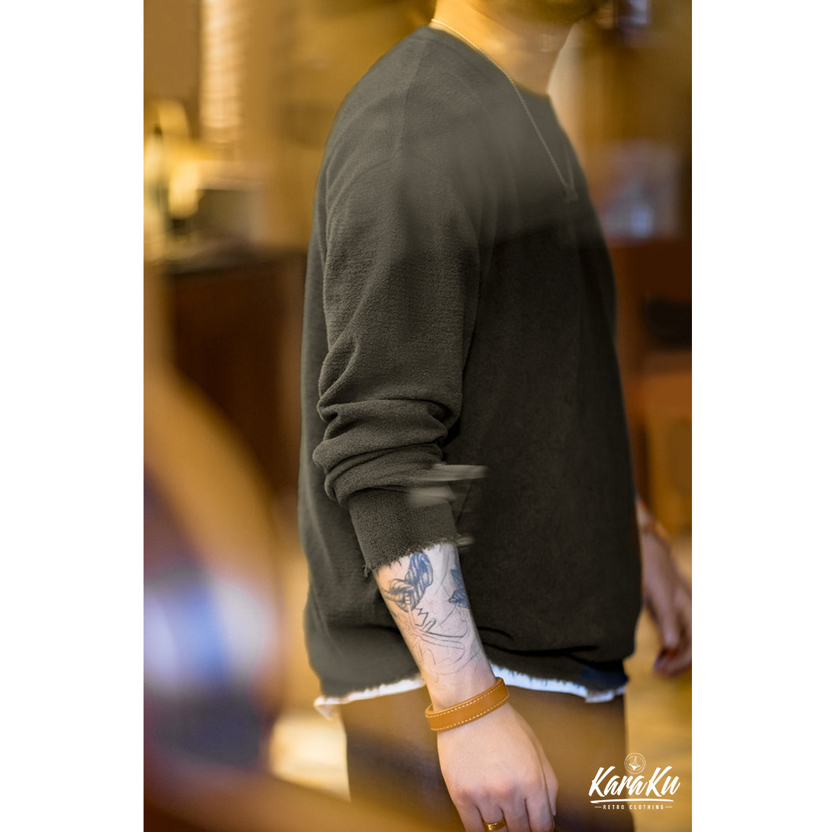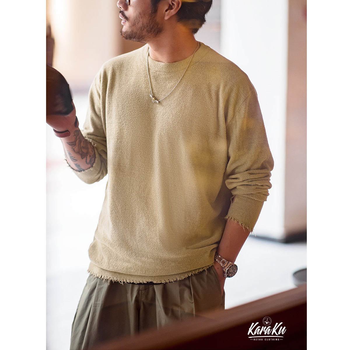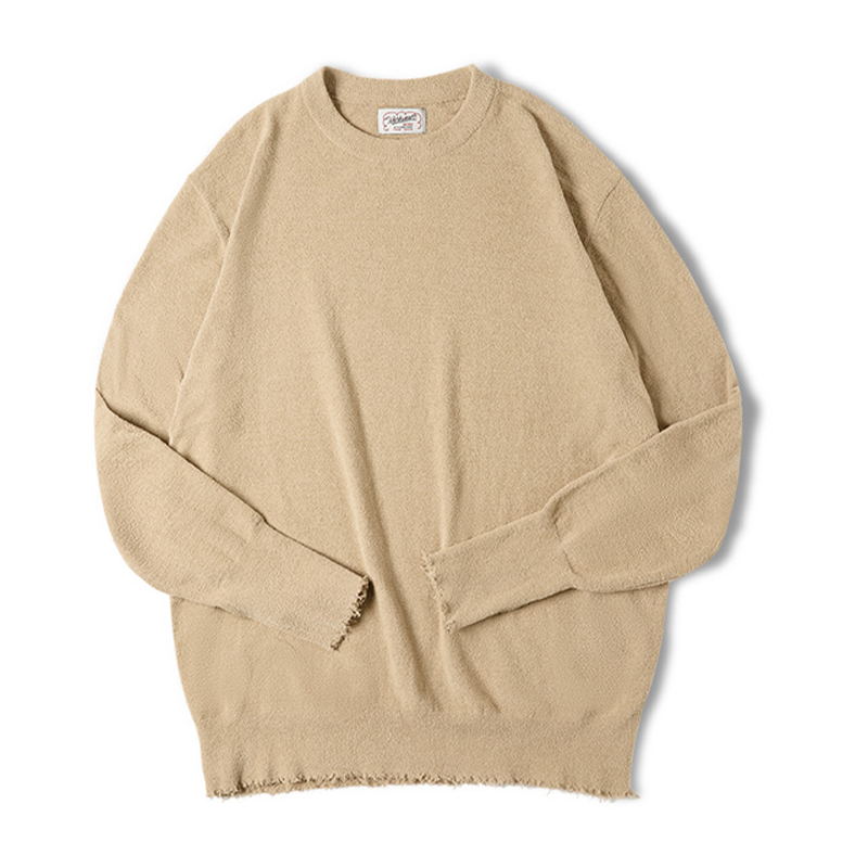 本アイテムは裾周りと袖口は大胆なダメージ加工がストリートの印象を与えるインパクト、全体のシンプルな色の中でポイントにもなる。身幅にややゆとりを持たせ、程よく肩のラインをドロップさせたトレンド感のあるボックスシルエット。両袖先にはサムホールデザインもポイント、サムホールは、英語の「thumbhole」で「親指を入れる穴」という意味。穴に指を通して着ることで洋服が固定され、動いたときに袖がずり上がるのを防止できる。気持ち良すぎる肌触りのポリエステル生地を採用、湿気を放散しやすく速乾性に優れている、シワになりにくく扱いやすいのが特徴、ストレスなく着用していただけます。