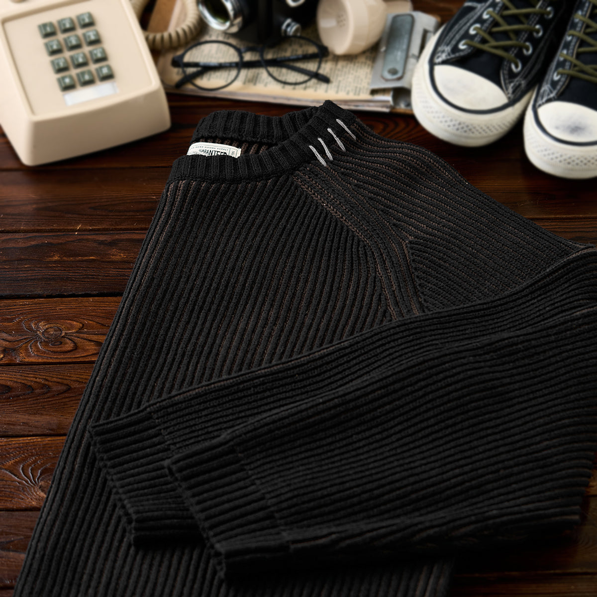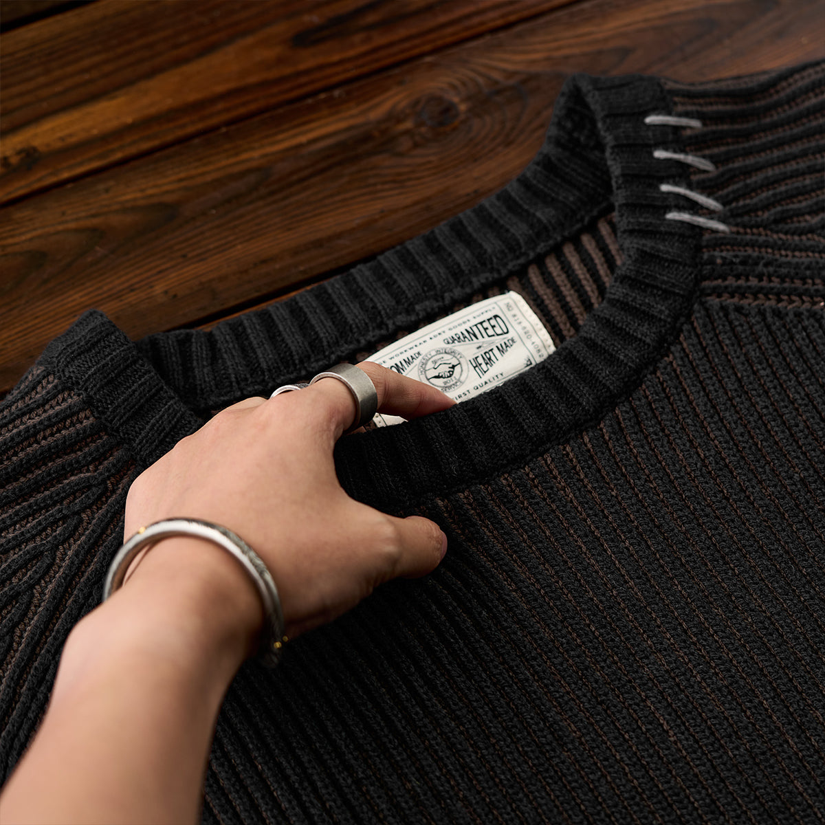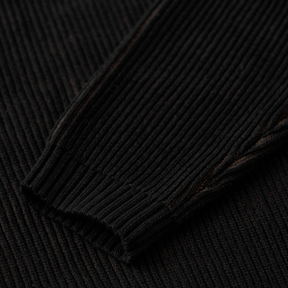全体的にリブ編みで、素材感と立体感を演出。リブ編みのピッチが均一で、洗練された印象を与えている。