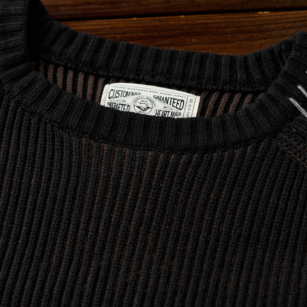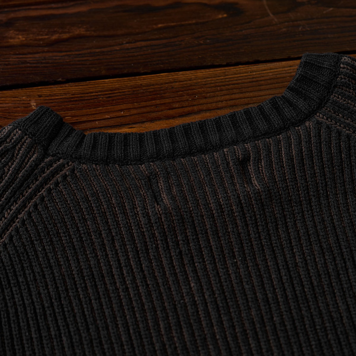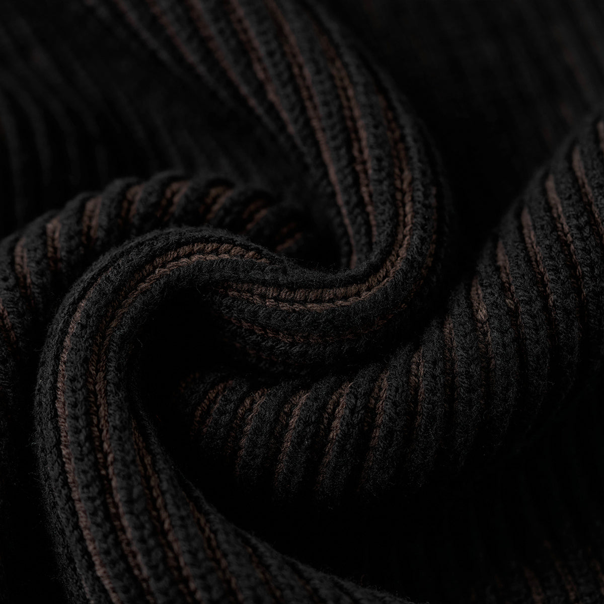 全体的にリブ編みで、素材感と立体感を演出。リブ編みのピッチが均一で、洗練された印象を与えている。