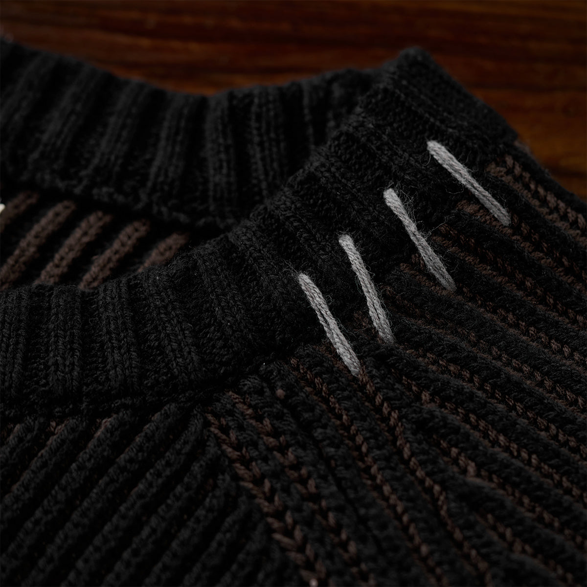 ブラックをベースに、ブラウンの糸が混ざった2色使い。ブラウンは、ブラックのベースカラーに深みと奥行きを与え、単調さを避けている。落ち着いたトーンで、様々なコーディネートに合わせやすい。