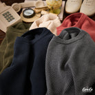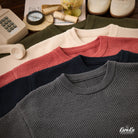 カラーは男らしさ満載のロイヤルブルーやアーミーグリーン、どんな色目とも相性の良いダークグレー、清潔感がたっぷりのベージュ、暖かくて可愛い感じのレンガレッド5色展開、どれも上品で品格高い雰囲気が漂う。