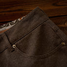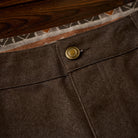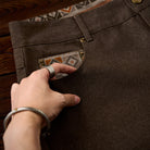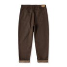 シンプルなブラウン系カラーを基調としたデニムパンツで、落ち着いた色味が特徴です。太めのストレートシルエットで、リラックス感のあるカジュアルなスタイルに適しています。背面ウエスト部分にはブランドタグがつき、クラフトマンシップをアピールしています。