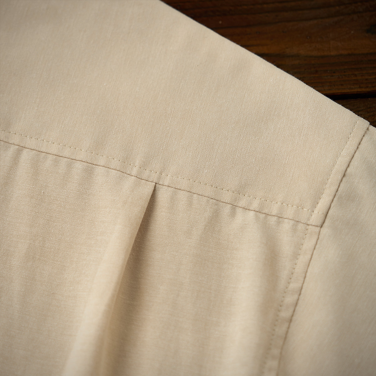 素材には、程よいハリ感と耐久性を備えたオックスフォード生地を使用。通気性にも優れ、季節を問わず快適に着用できます。