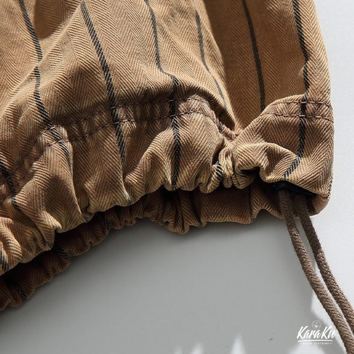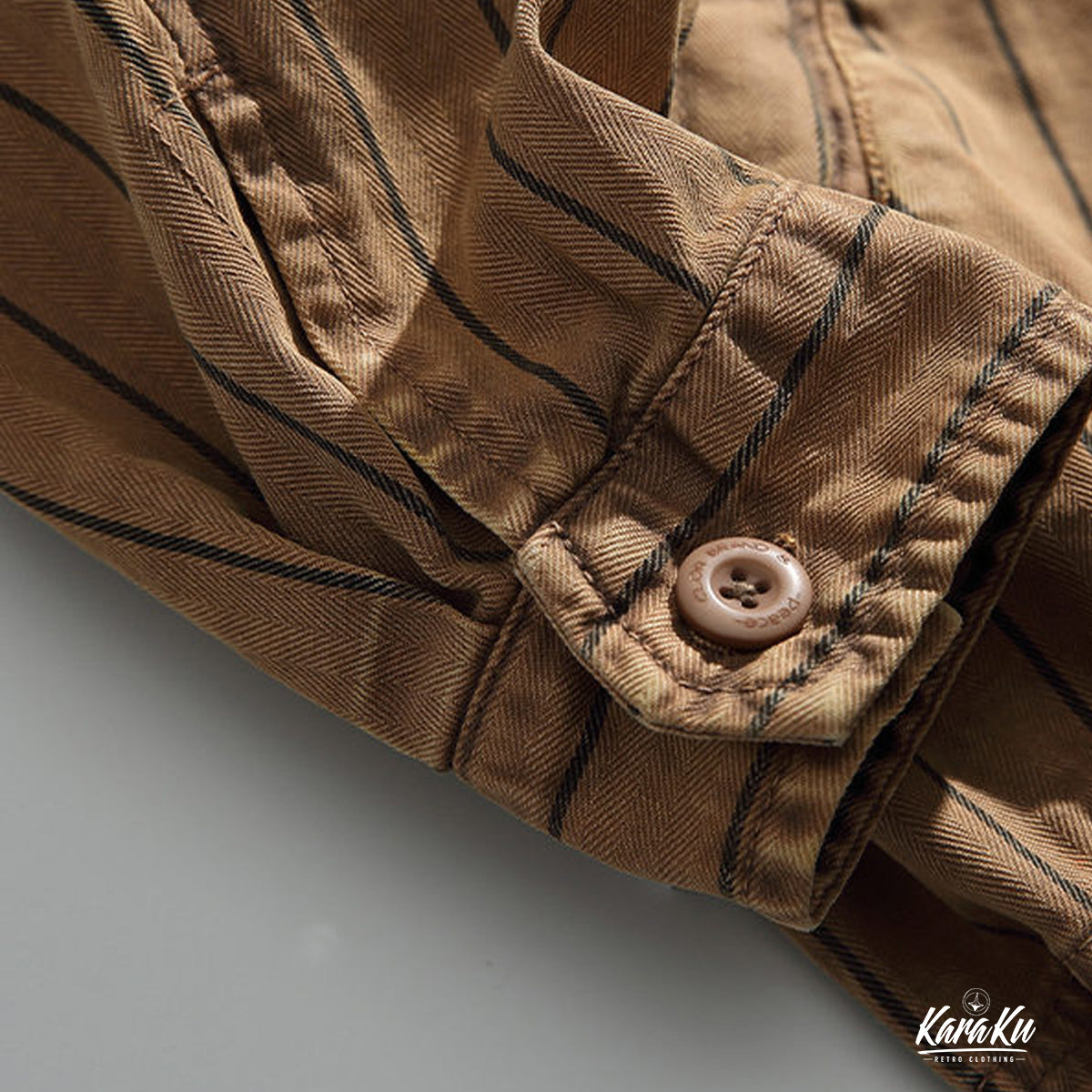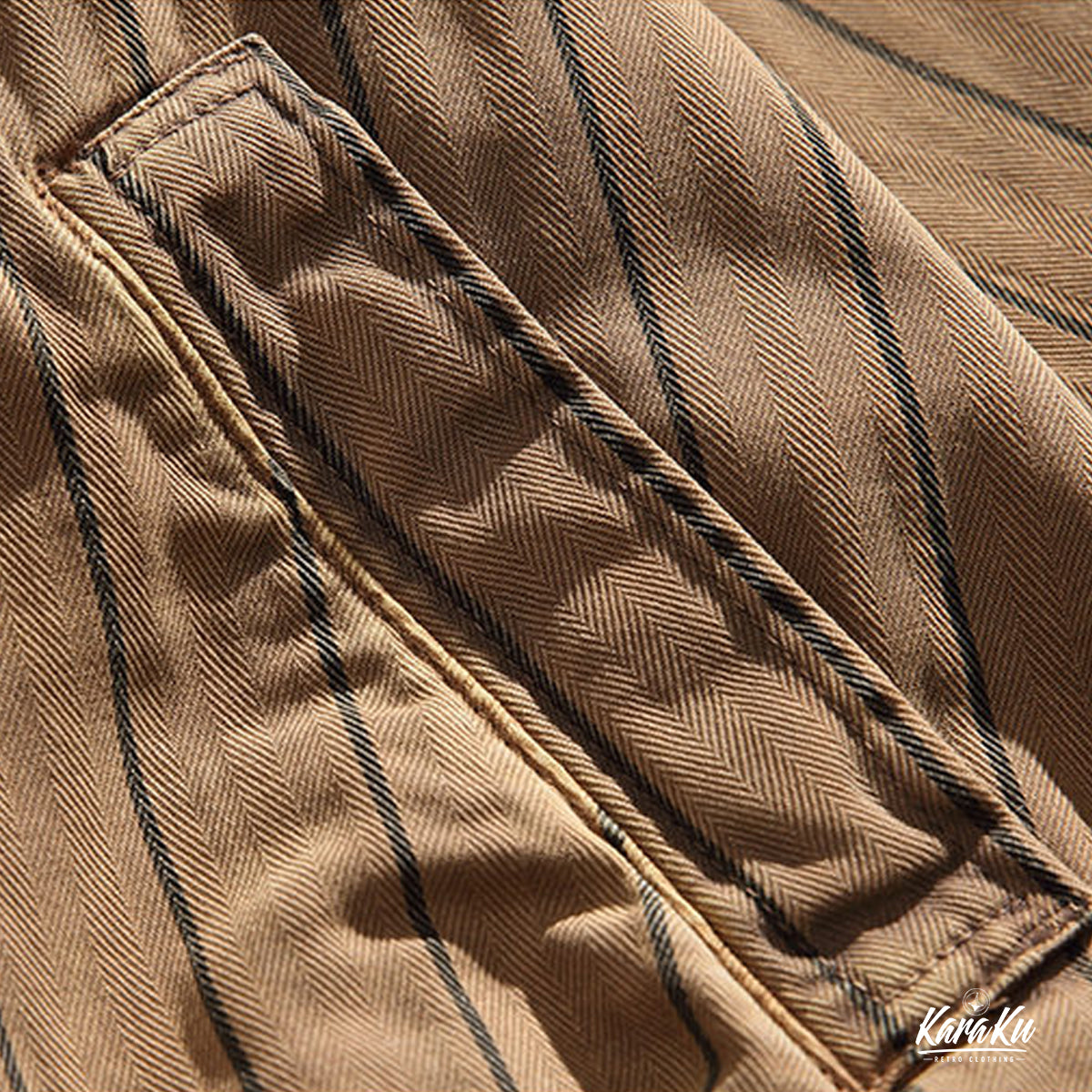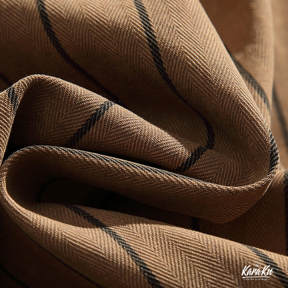 クラシックなヘリンボーン柄に、目を引くストライプデザインを融合させたジャケット。ストライプが全体にモダンなエッジを加え、伝統的なヘリンボーンパターンとの絶妙なバランスが際立ちます。襟元には柔らかで温かみのあるコーデュロイ素材を使用し、ヴィンテージ感と洗練された印象を両立。胸元の刺繍バッジがディテールにこだわる姿勢を感じさせ、さりげないアクセントをプラスします。また、裾にはドローコードを配しており、シルエットを自在に調整可能。カジュアルなシーンからドレスダウンスタイルまで、幅広いシーンで個性を引き立てる一着です。
