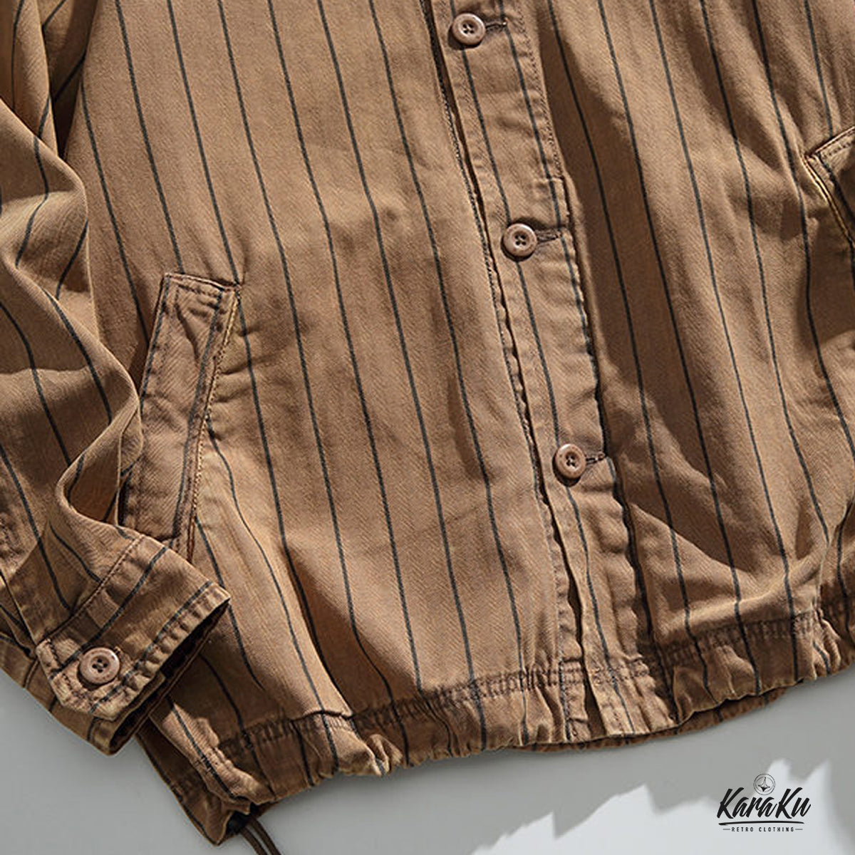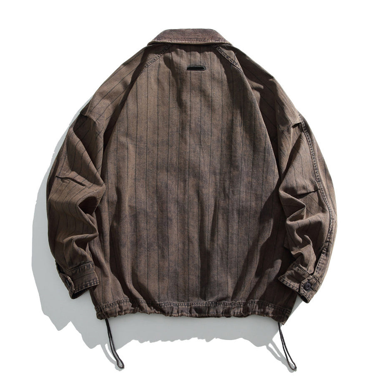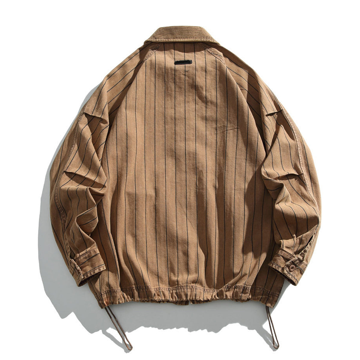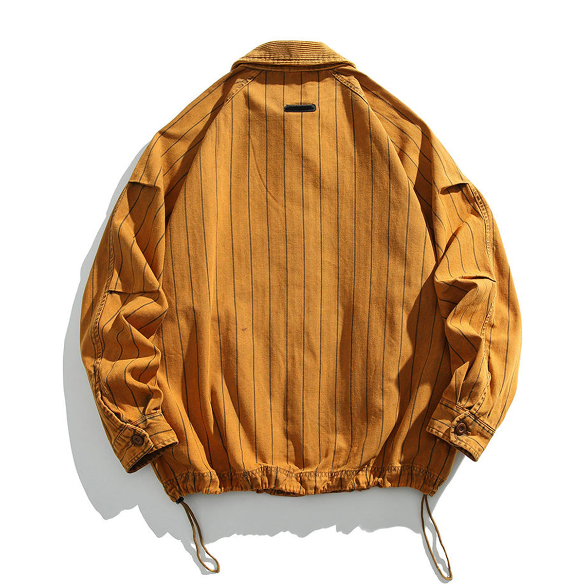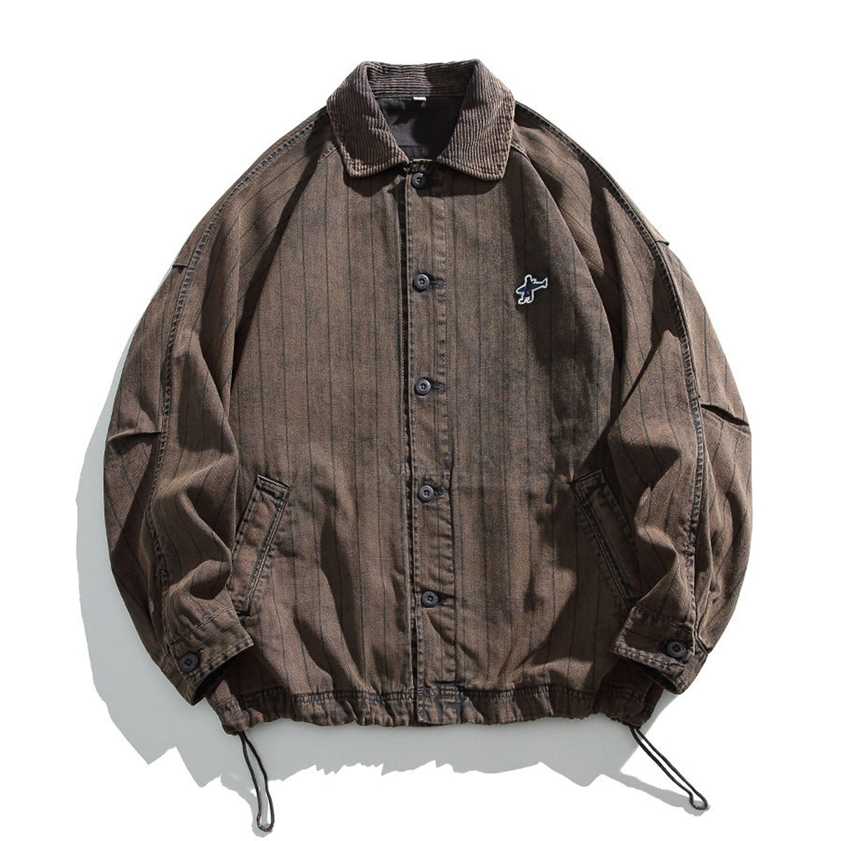 襟・コーデュロイ 刺繍バッジ入りストライプ柄ラグランジャケット