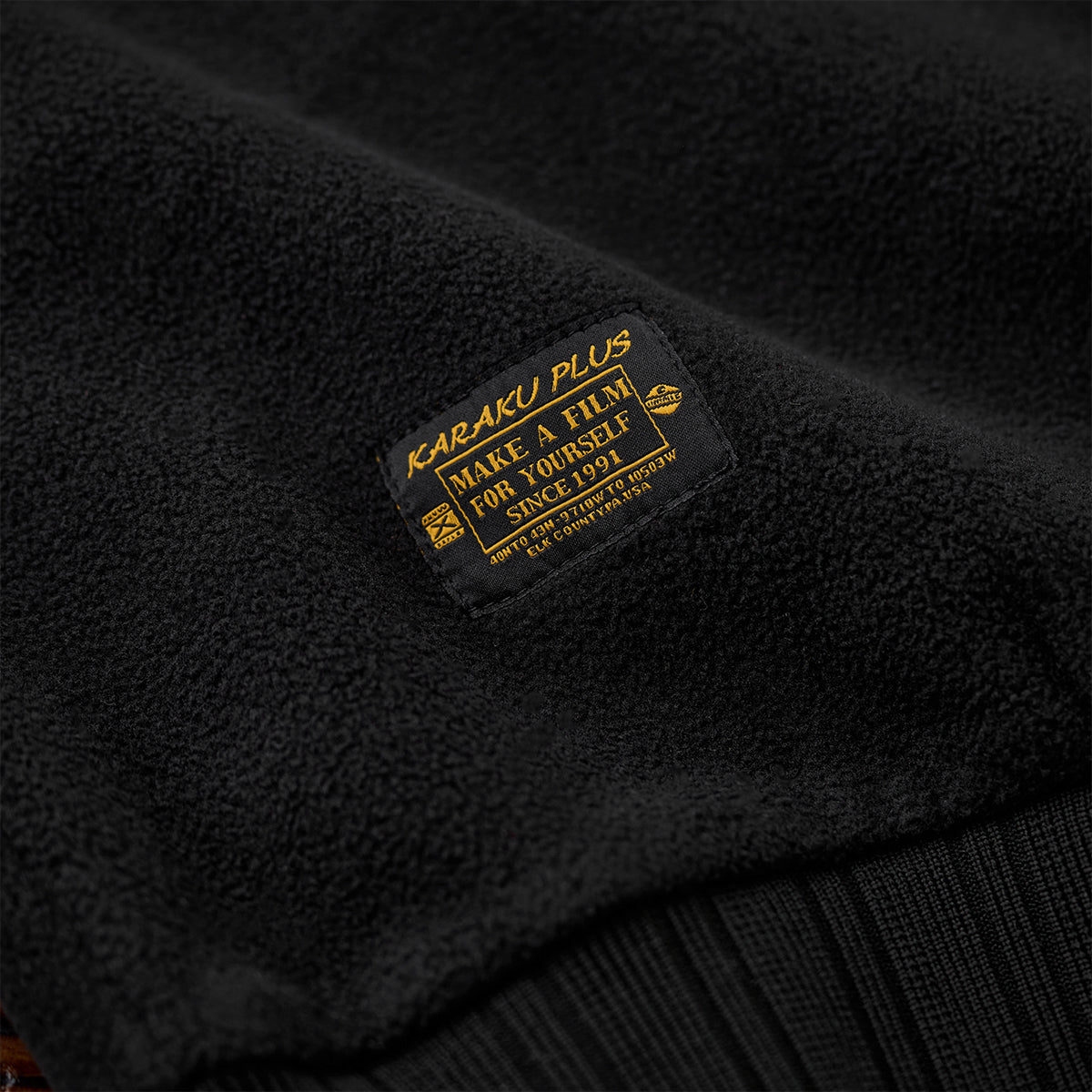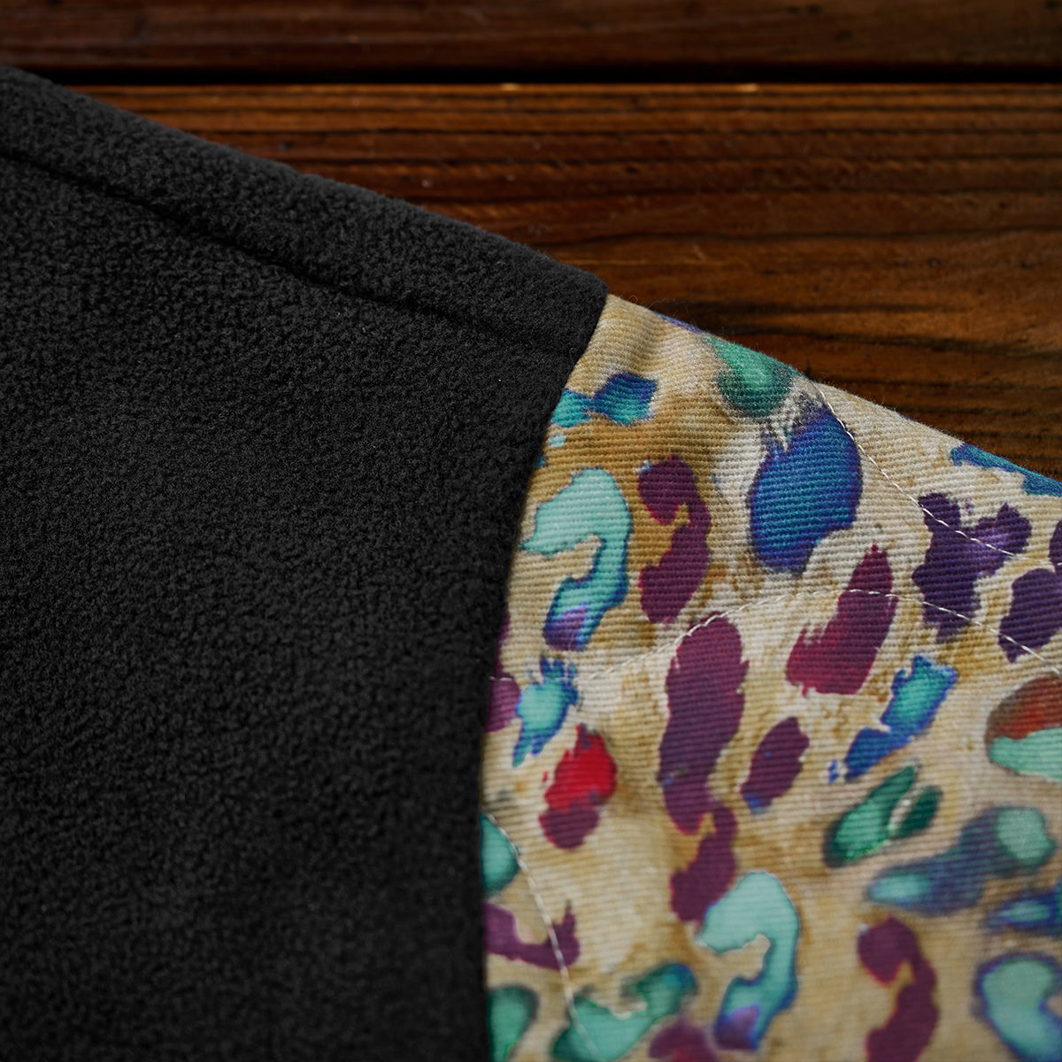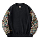 Karaku×川又聡「夢豹」豹柄プリントキルト袖切替フリースプルオーバースウェット