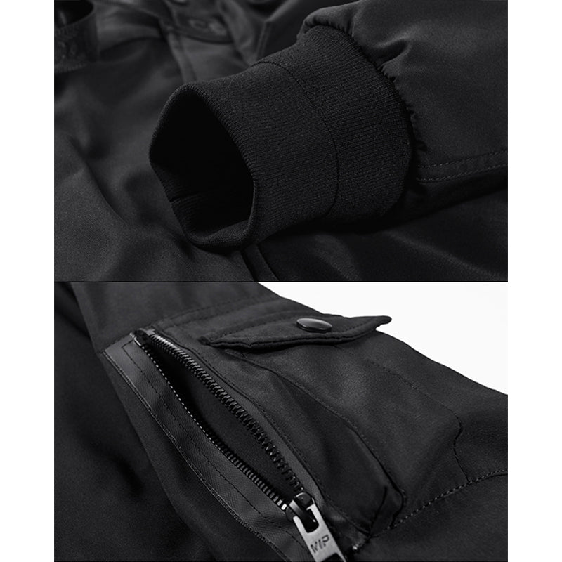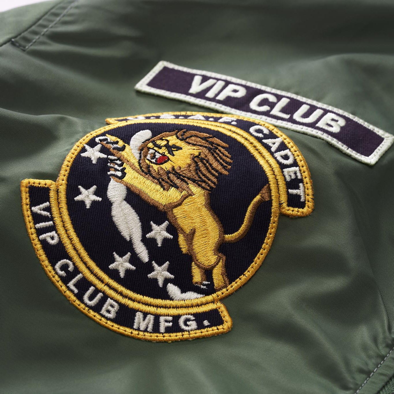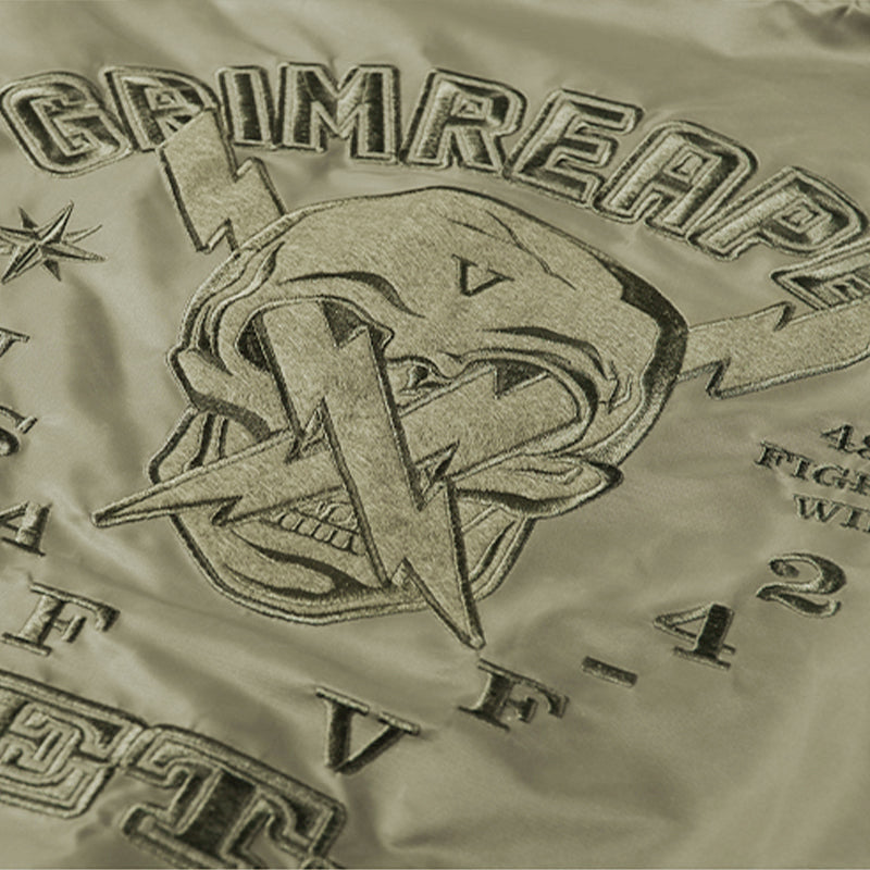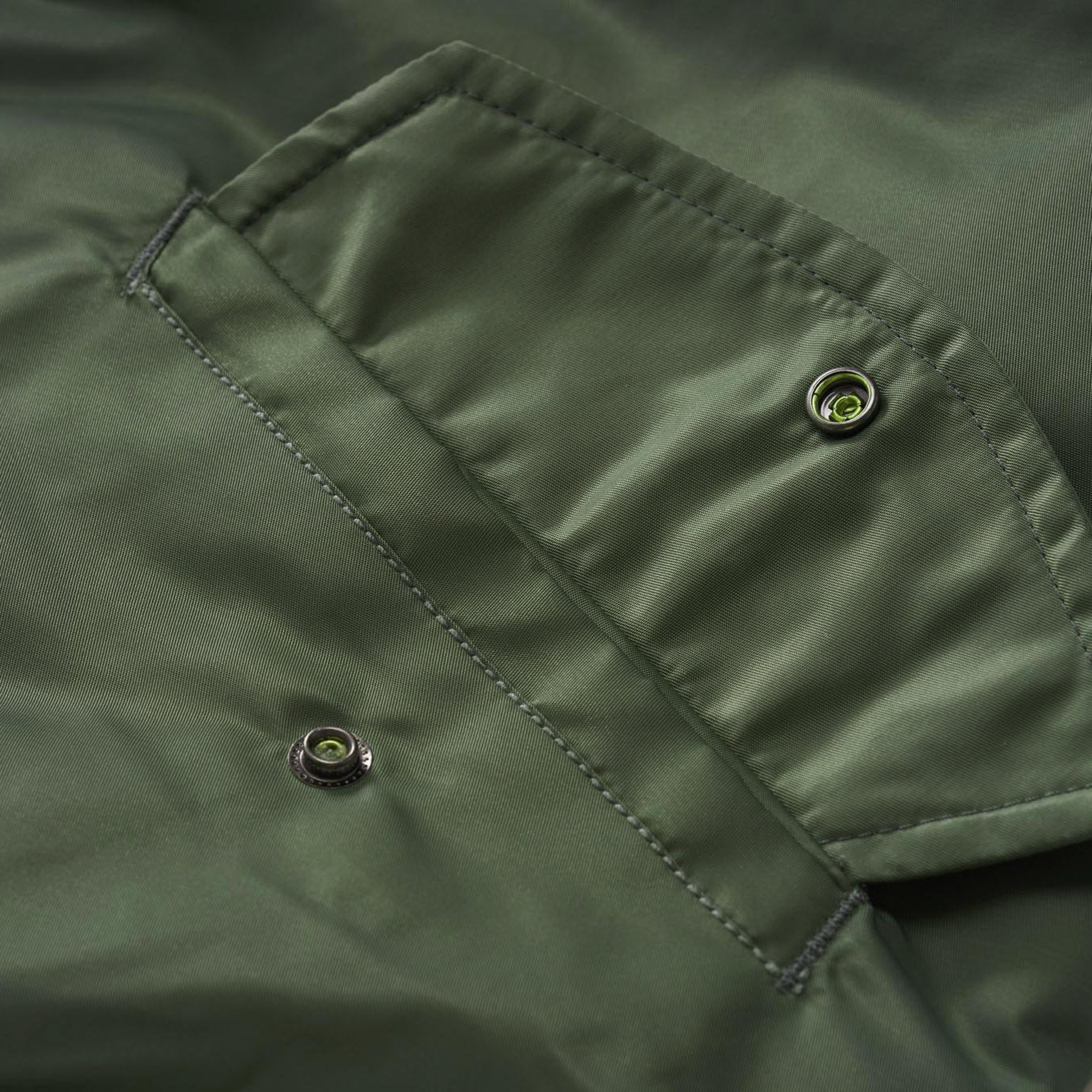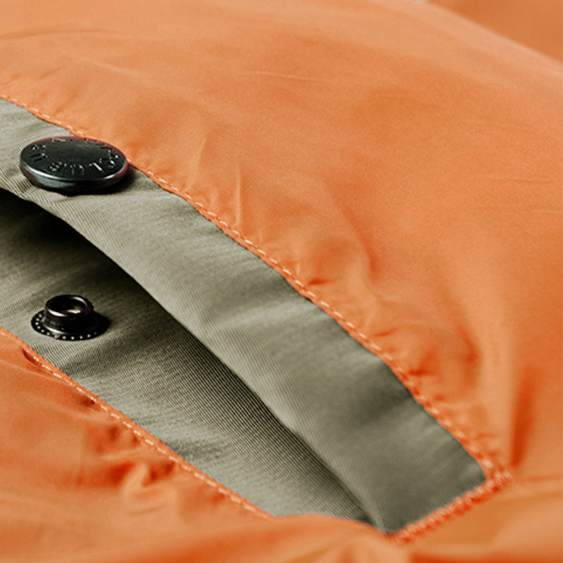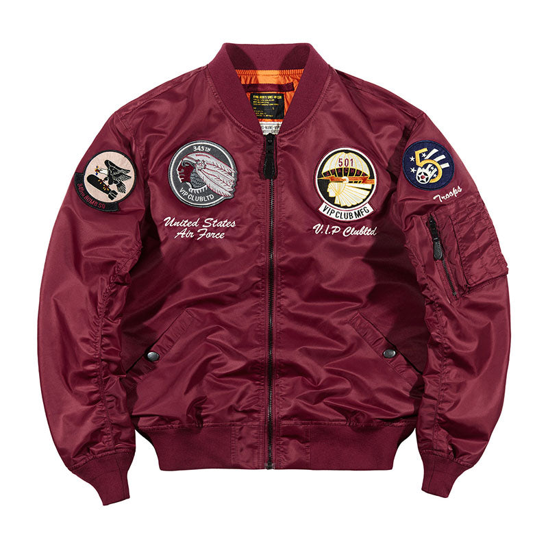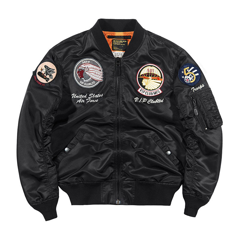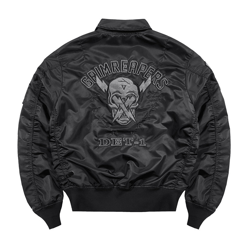 まずはそもそも論として、MA-1がどういうジャケットかについて軽く解説を。1944年に誕生したフライトジャケットB-15の後継モデルとして、1950年代初頭にアメリカ空軍で採用されたのがその始まりです。“インターミディエイトゾーン”と呼ばれる20℃から-10℃の気温で着用され、カラーはくすんだ緑であるセージグリーンが基本。飛行機のシートに座った際に生地が挟み込まれないよう、後ろ身頃を短めに設定しているのも特徴です。また、本来のMA-1は裏地に視認性の高いオレンジカラーを用いていますが、これは万一の墜落・脱出を想定しての仕様。裏返しに着ることで救出部隊の発見率を上げる役割を果たします。