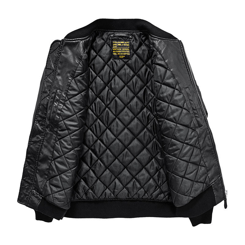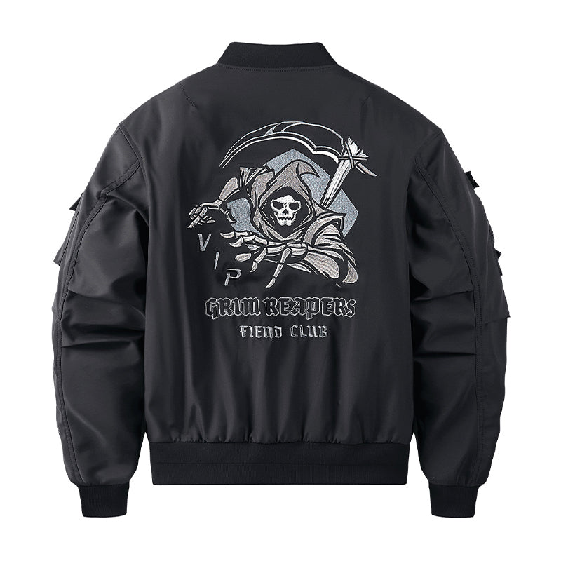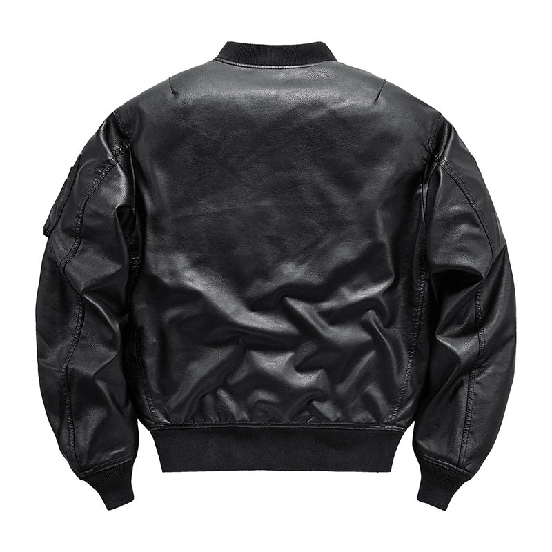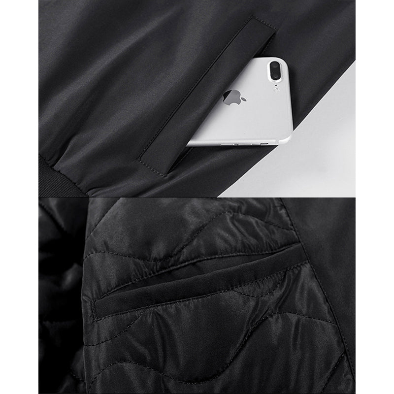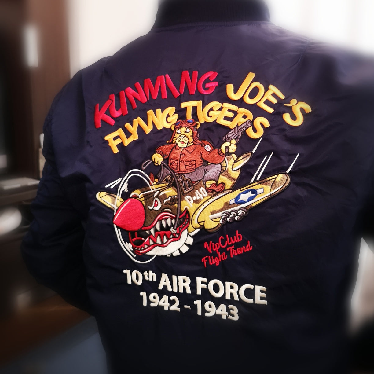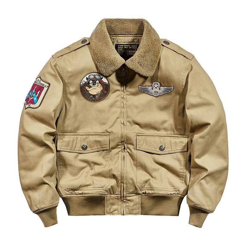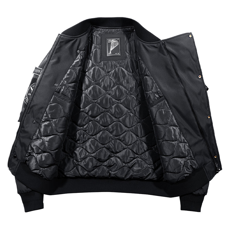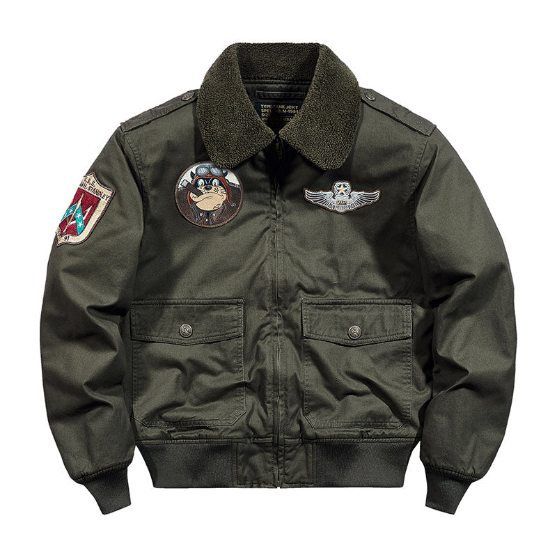 まずはそもそも論として、MA-1がどういうジャケットかについて軽く解説を。1944年に誕生したフライトジャケットB-15の後継モデルとして、1950年代初頭にアメリカ空軍で採用されたのがその始まりです。“インターミディエイトゾーン”と呼ばれる20℃から-10℃の気温で着用され、カラーはくすんだ緑であるセージグリーンが基本。飛行機のシートに座った際に生地が挟み込まれないよう、後ろ身頃を短めに設定しているのも特徴です。また、本来のMA-1は裏地に視認性の高いオレンジカラーを用いていますが、これは万一の墜落・脱出を想定しての仕様。裏返しに着ることで救出部隊の発見率を上げる役割を果たします。