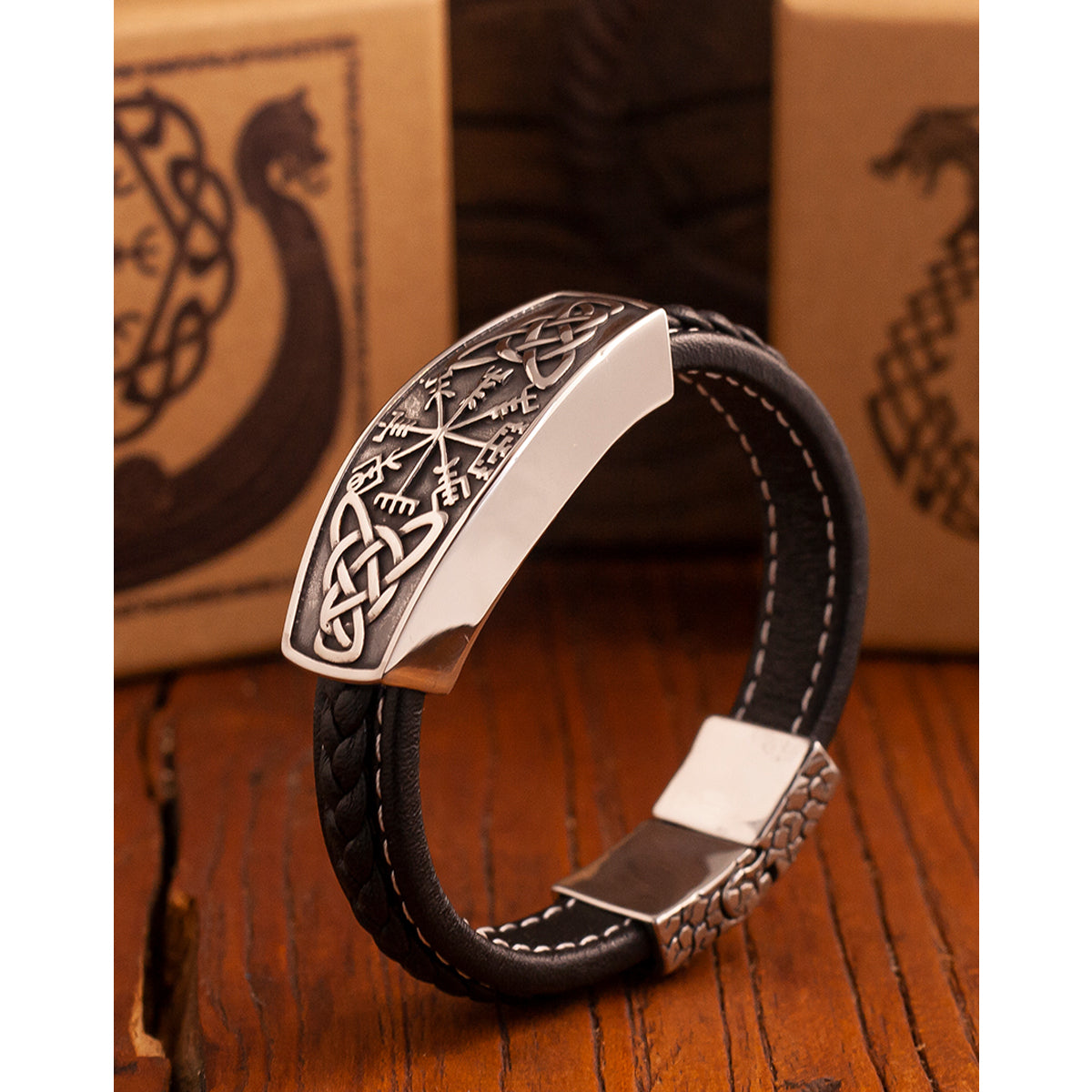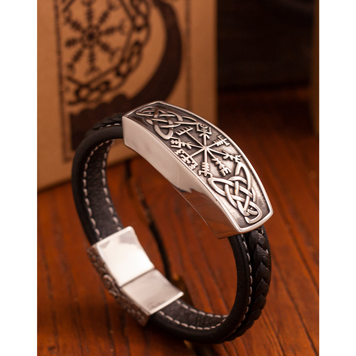 ヴァイキングコンパスバックル PUレザーマグネットブレスレット