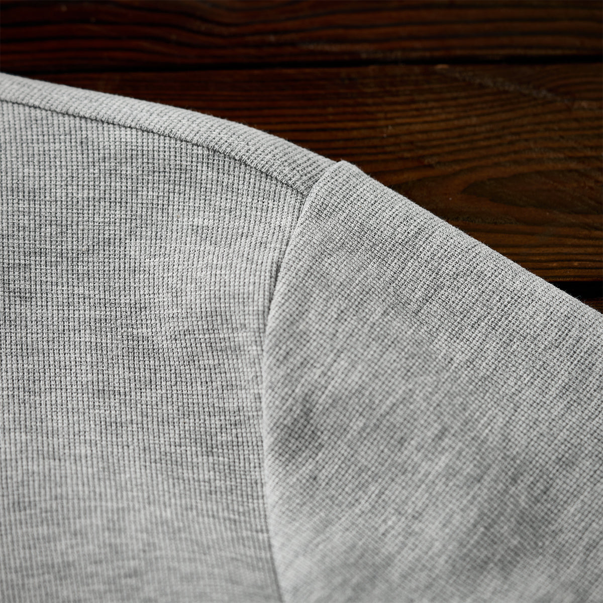 細かな凹凸のあるワッフル生地は、触感に柔らかさを与えつつ、肌への密着を軽減。通気性が高く、蒸れにくい素材として機能的。