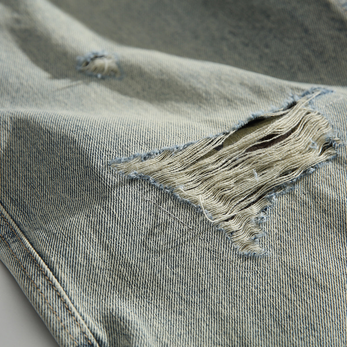 ハンドメイドダメージ&ウォッシュド加工 テーパードデニムパンツ