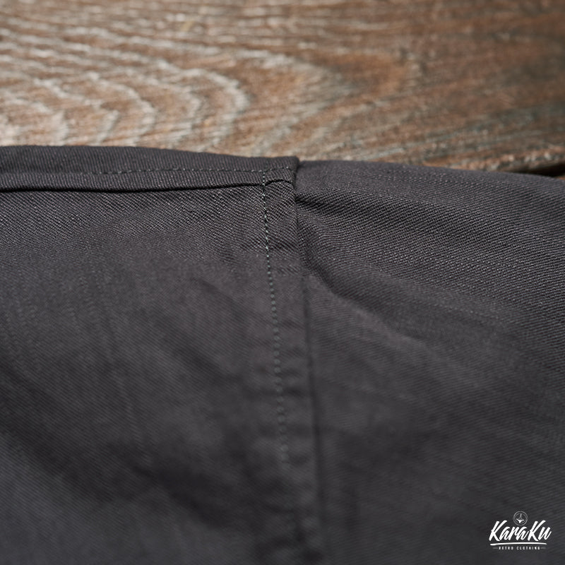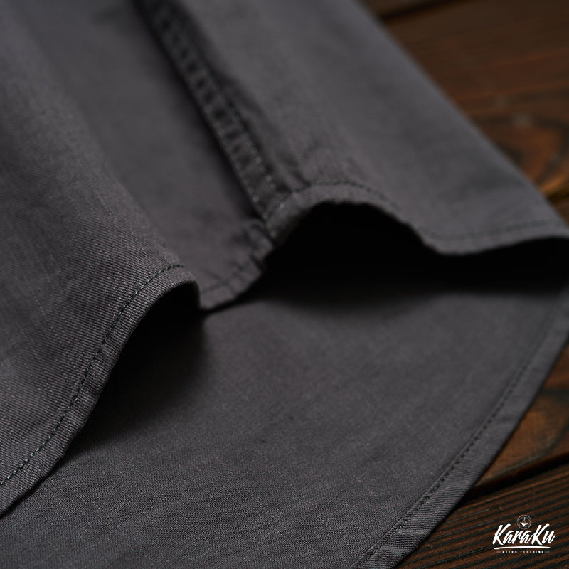 高番手のコットン生地を使用し、タフでしっかりとしてる質感があり、柔らかく肌に馴染むようになる。軽量で厚地にすることもできるのが特徴、柔らかさと丈夫さを併せ持った質感がポイント。