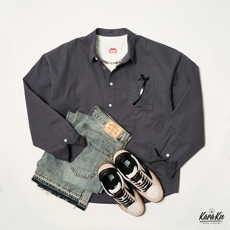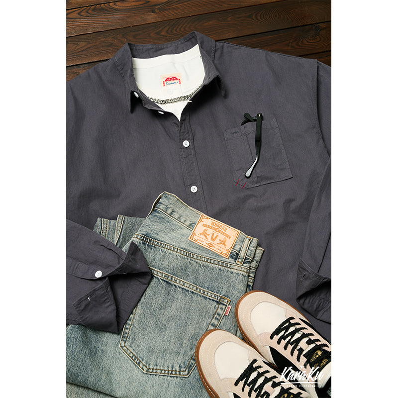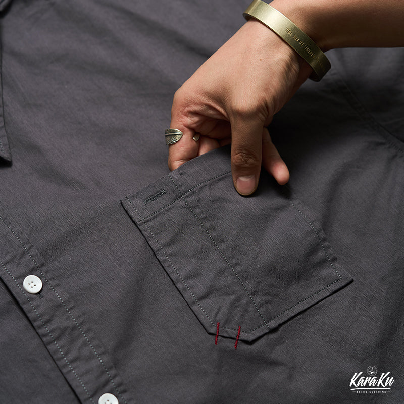 サラリと着こなせるミニマルデザインが特徴の長袖シャツ。洗練された無地デザインで、品があり高級感さえ伝わってきます。胸ポケットのシームにステッチをレッドの糸で切替えてアクセントに、シンプルな無地シャツに少しだけ味付けした。無地ベースの中にも統一感のあるデザインで、1枚あれば幅広いスタイルに順応できます。