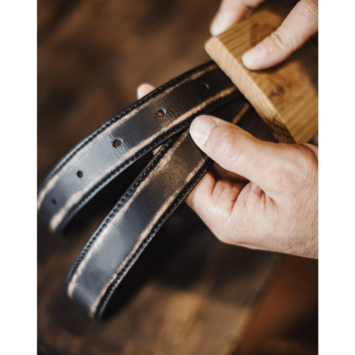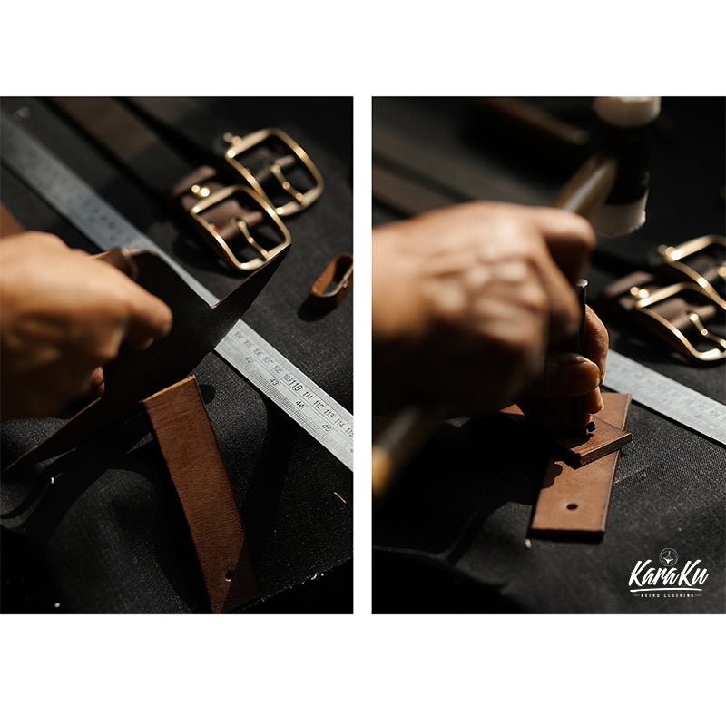 革製のベルトは耐久性があり、経年変化を楽しむこともできます。