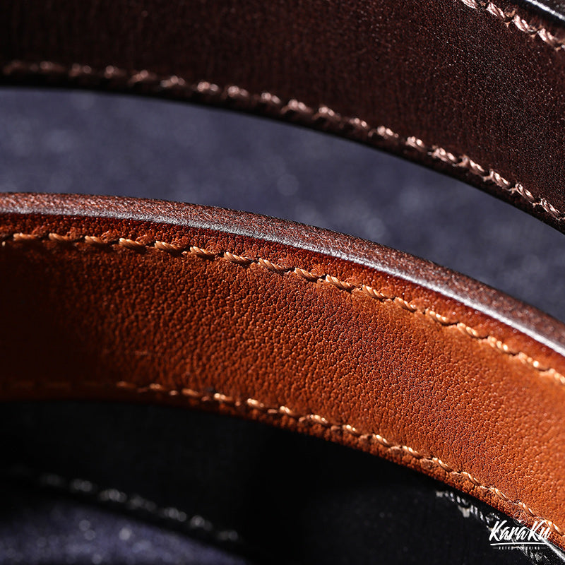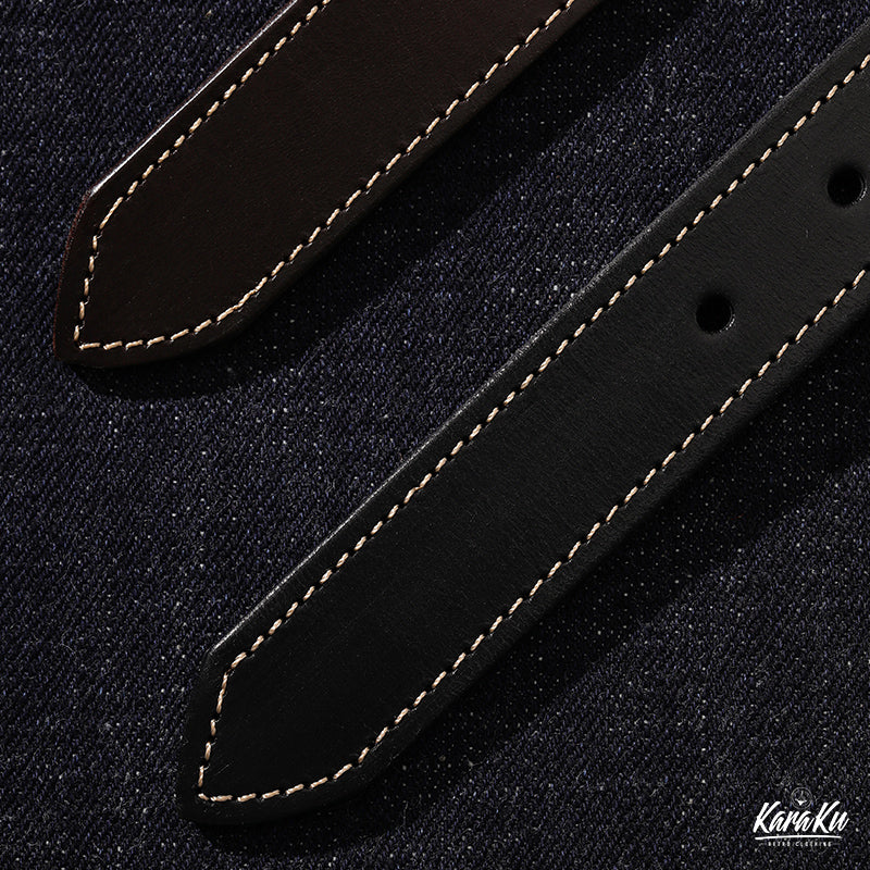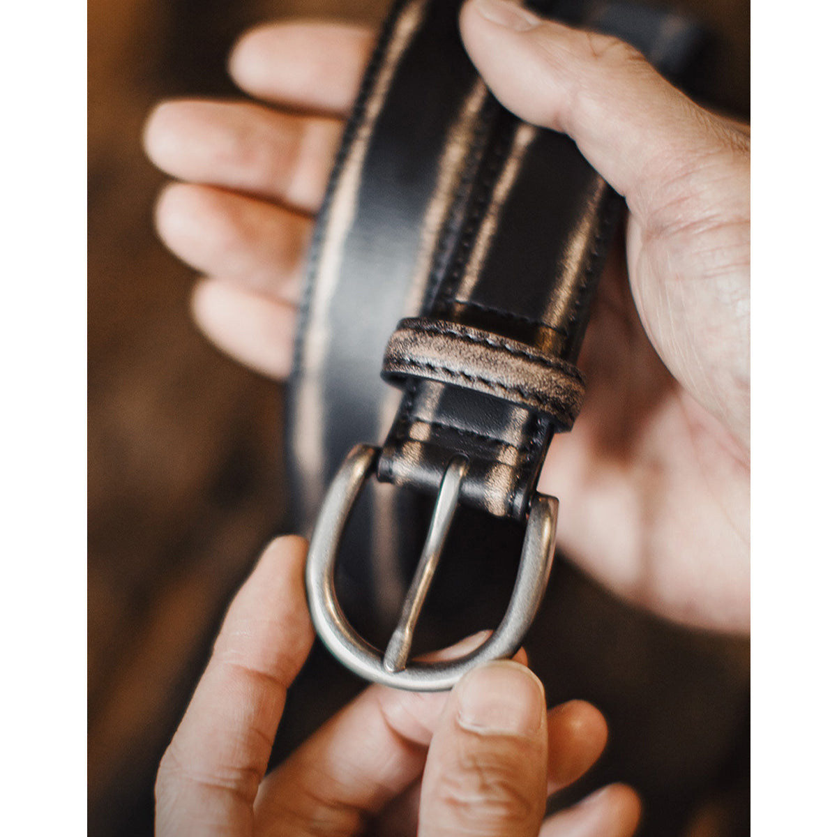 ビジネスや、フォーマルスタイルで使用することを目的にしたベルトは30~38mm程度で販売されているものが多く、こちらの幅であればいろんなシーンでお使いいただけます。