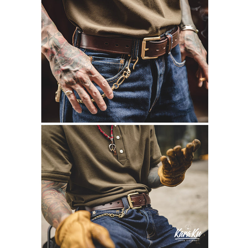 ジーンズなどのカジュアルな服装が多い方は、存在感たっぷりの48mmベルトを使用することでよりカジュアルな雰囲気を楽しむことができます。