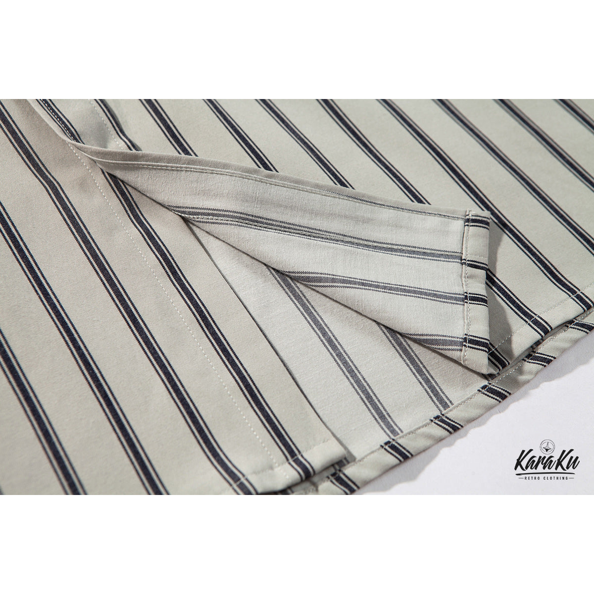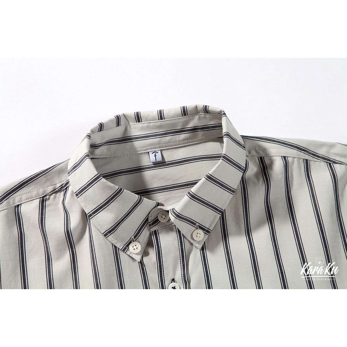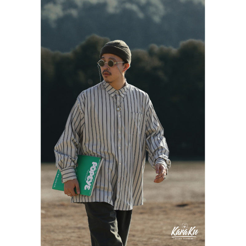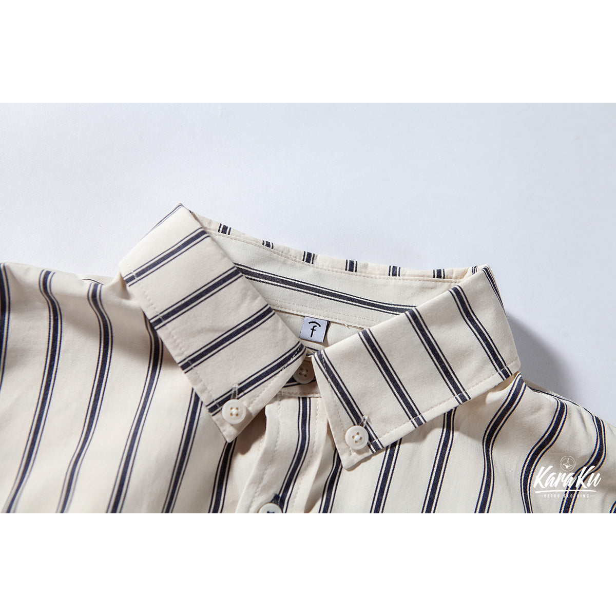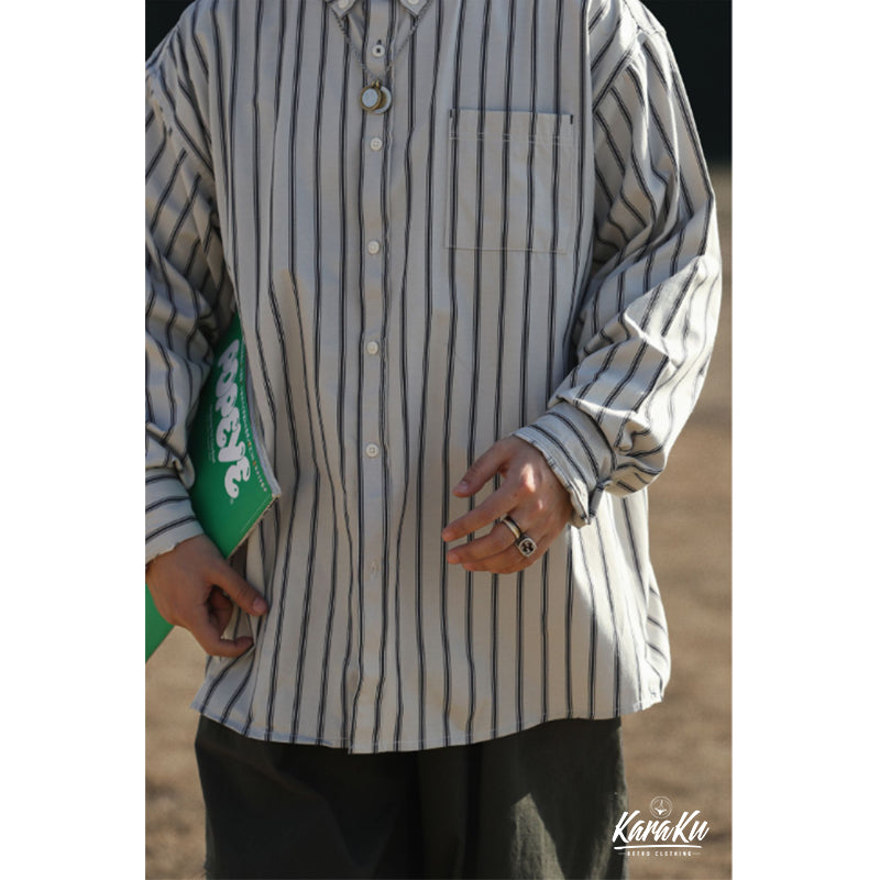 ブルーXホワイトストライプ柄のボタンダウンシャツで、