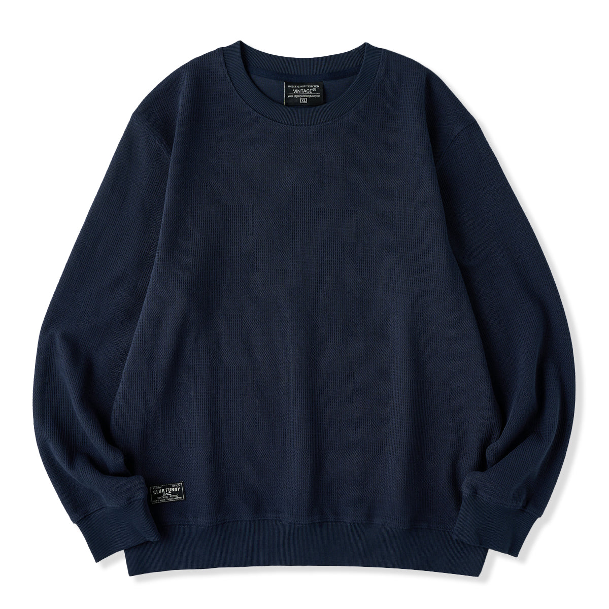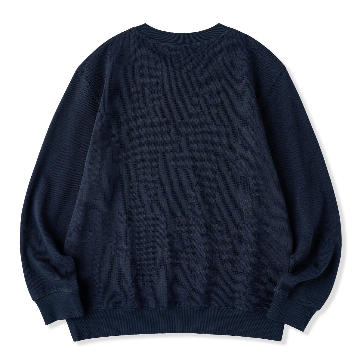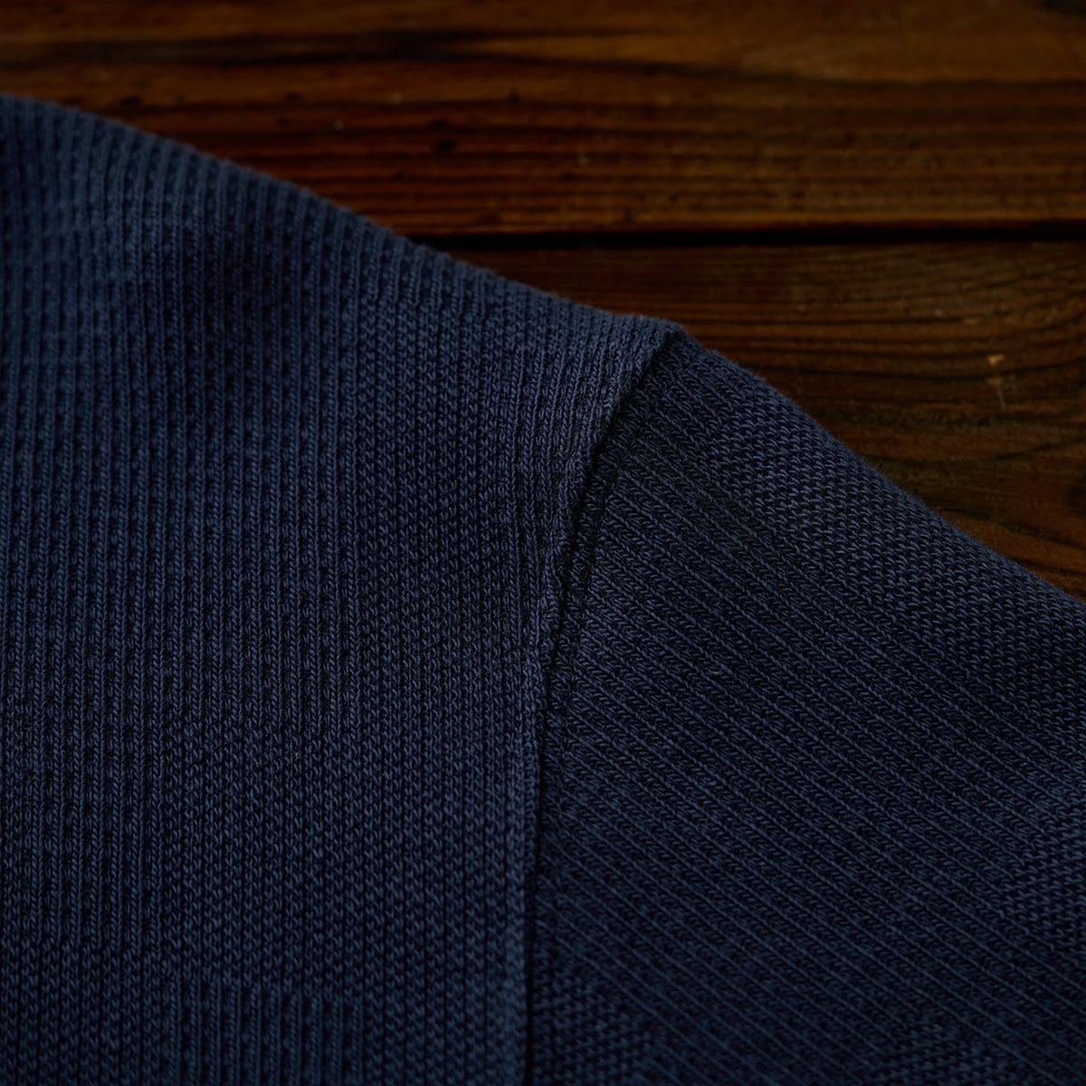 模様を織り方によって表面に凹凸感があるような特別な表現です。ややゆったりしたサイズで、胸に大きめのフラップポケット付き、錨マークの入ったアンカーボタンが採用されて、船や航海を連想させるものとして、シンボル的に用いられることも多く、海軍由来のアイテムとしてならではの特徴も保留、しっかりとディテールを踏襲しています。