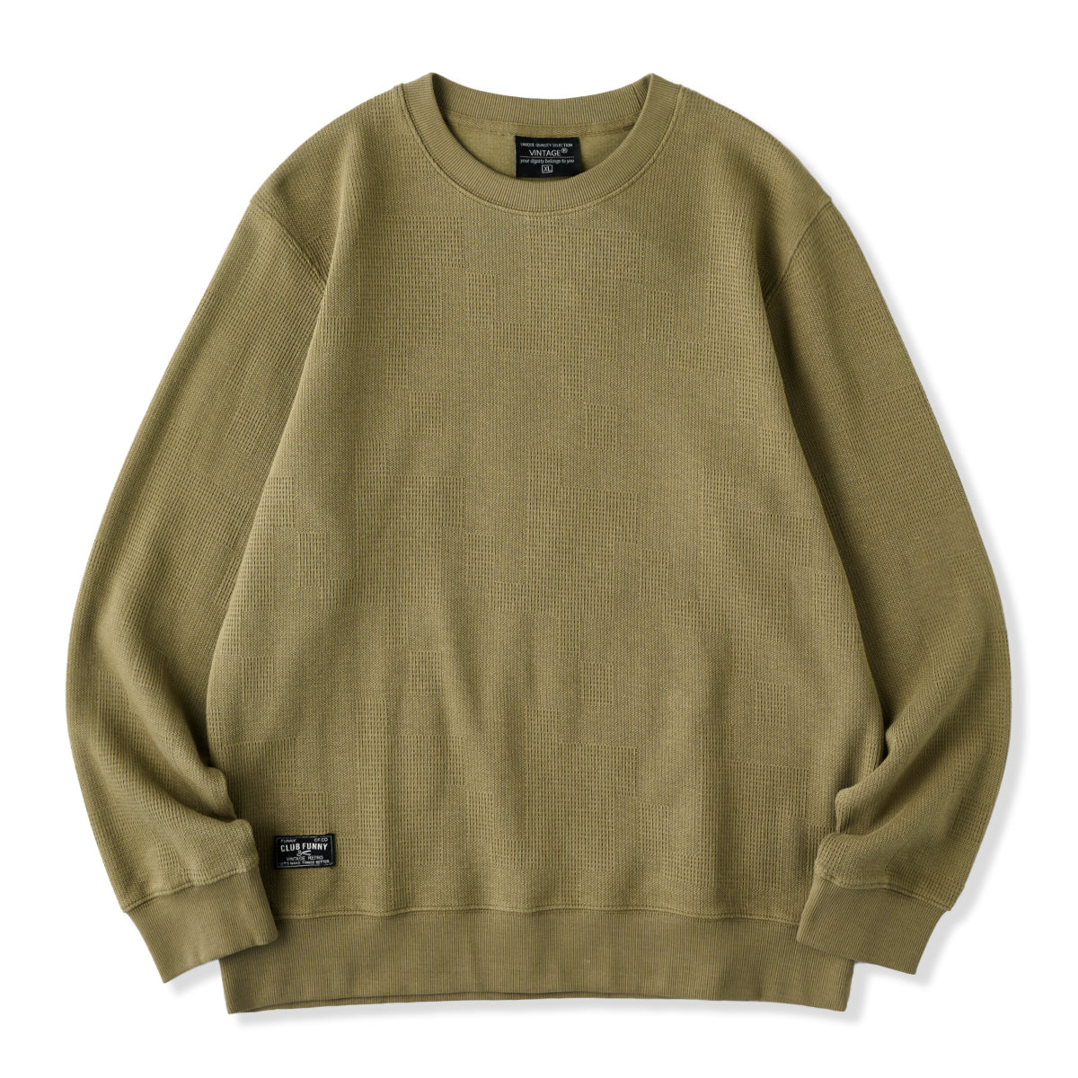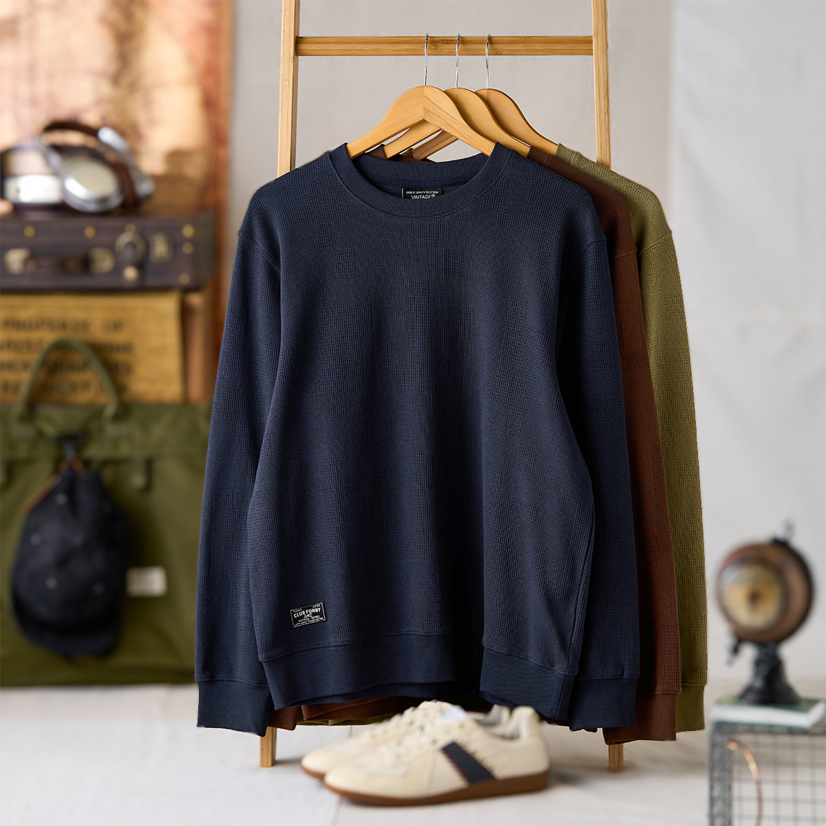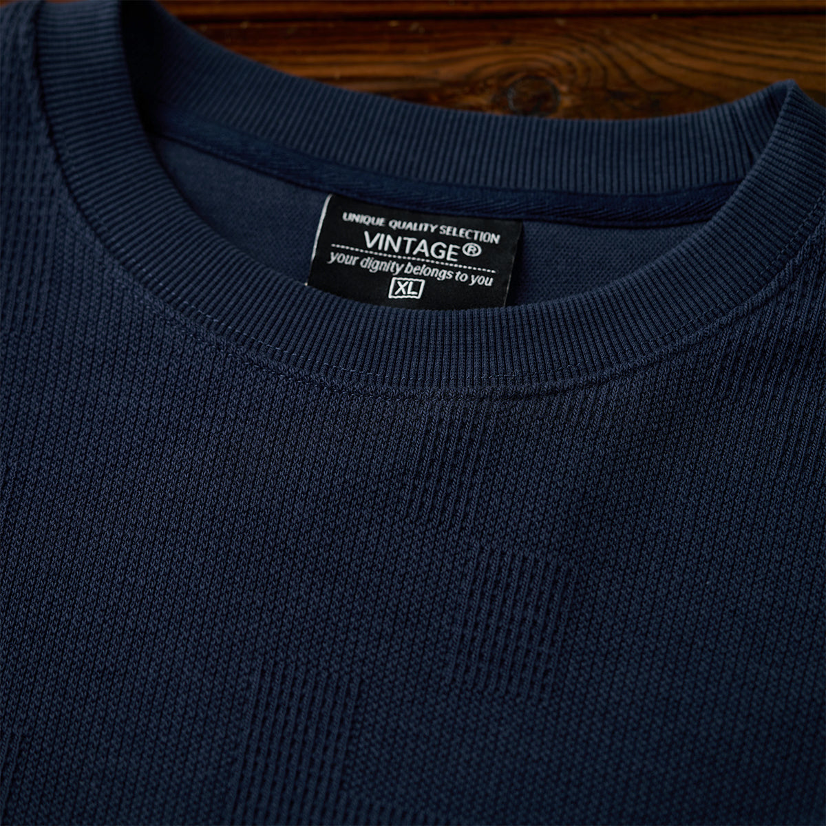 模様を織り方によって表面に凹凸感があるような特別な表現です。ややゆったりしたサイズで、胸に大きめのフラップポケット付き、錨マークの入ったアンカーボタンが採用されて、船や航海を連想させるものとして、シンボル的に用いられることも多く、海軍由来のアイテムとしてならではの特徴も保留、しっかりとディテールを踏襲しています。