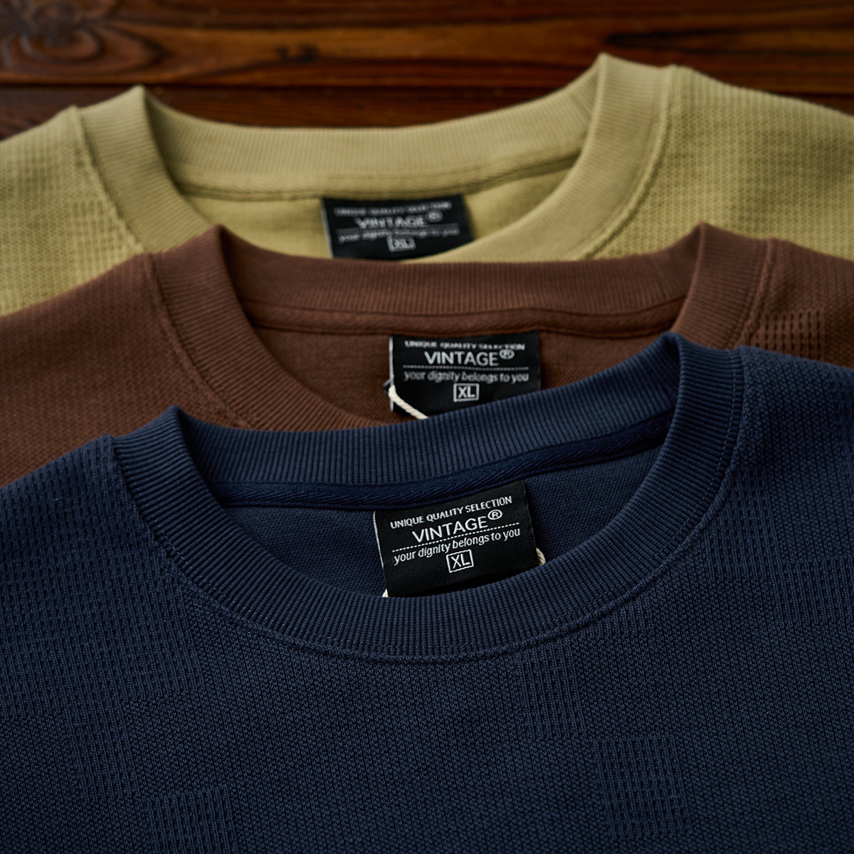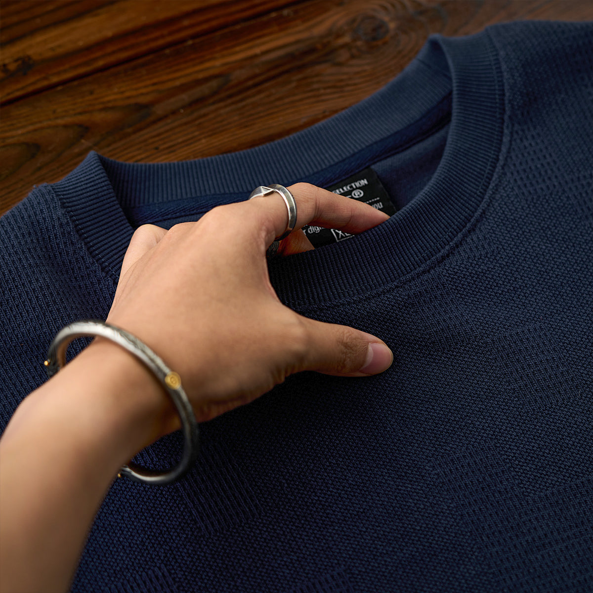 オリジナル加工で表面にシワのようなジャカードテクスチャは綺麗に現れていて、お洒落で高級感のある佇まいを演出。サラッとした手触りに速乾性を携えた、高機能綿麻素材を採用。
