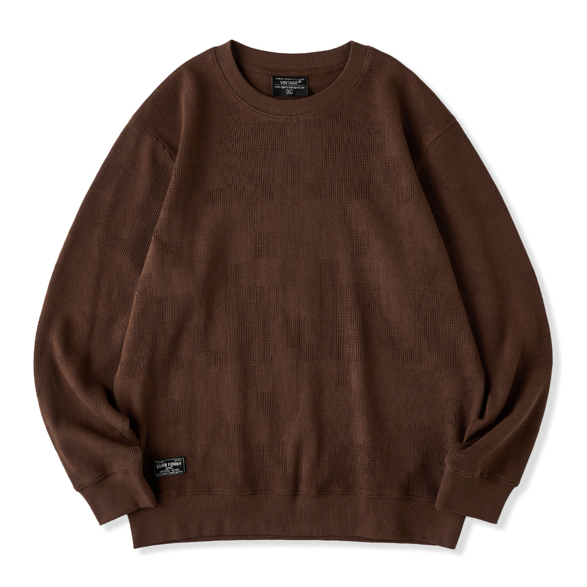 羽織るだけで旬な着こなしに仕上げるチェック柄のジャカードニットシャツ。