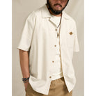 【予約】「STAY TRUE」刺繍ワッペン 綿麻xリヨセル混紡オープンカラーシャツ