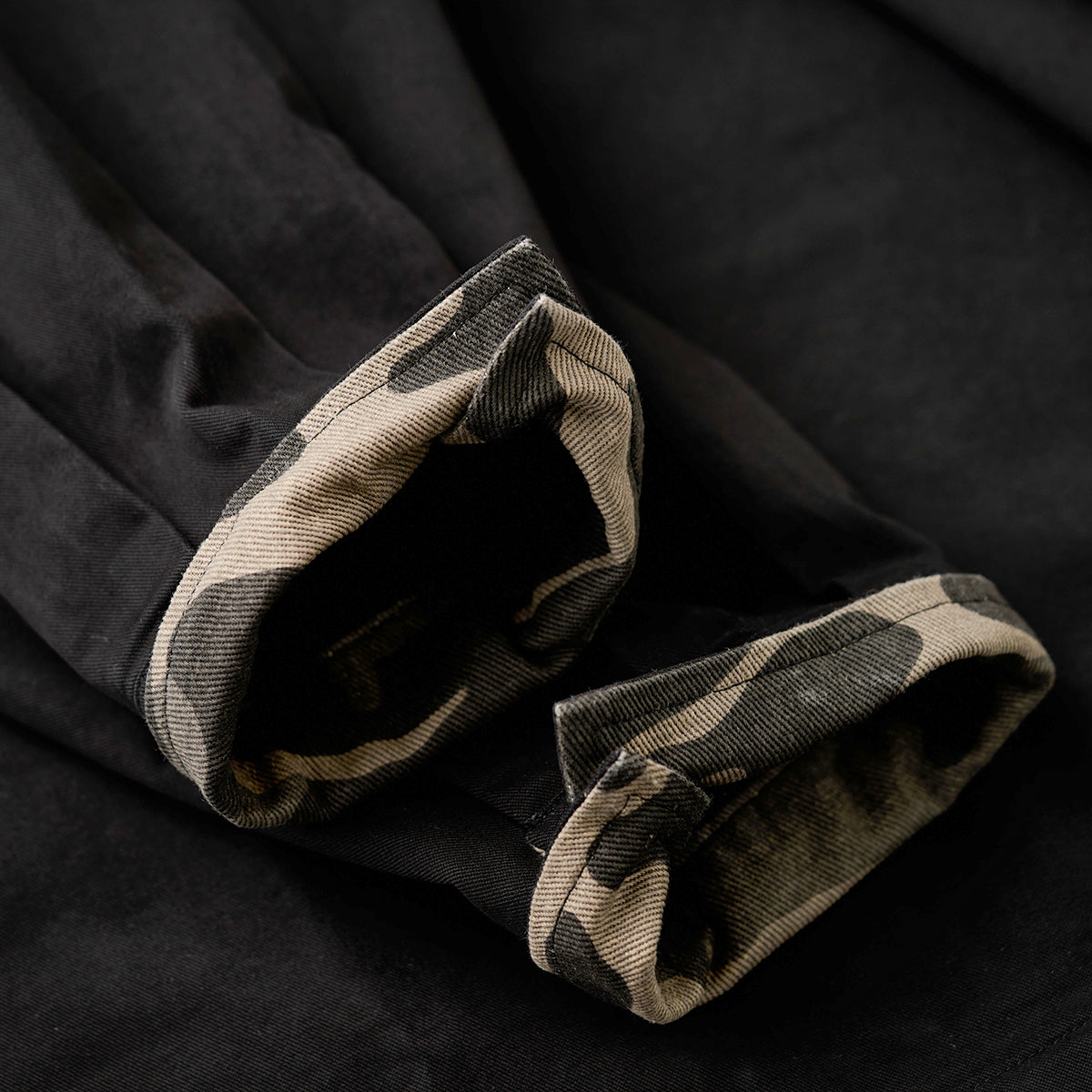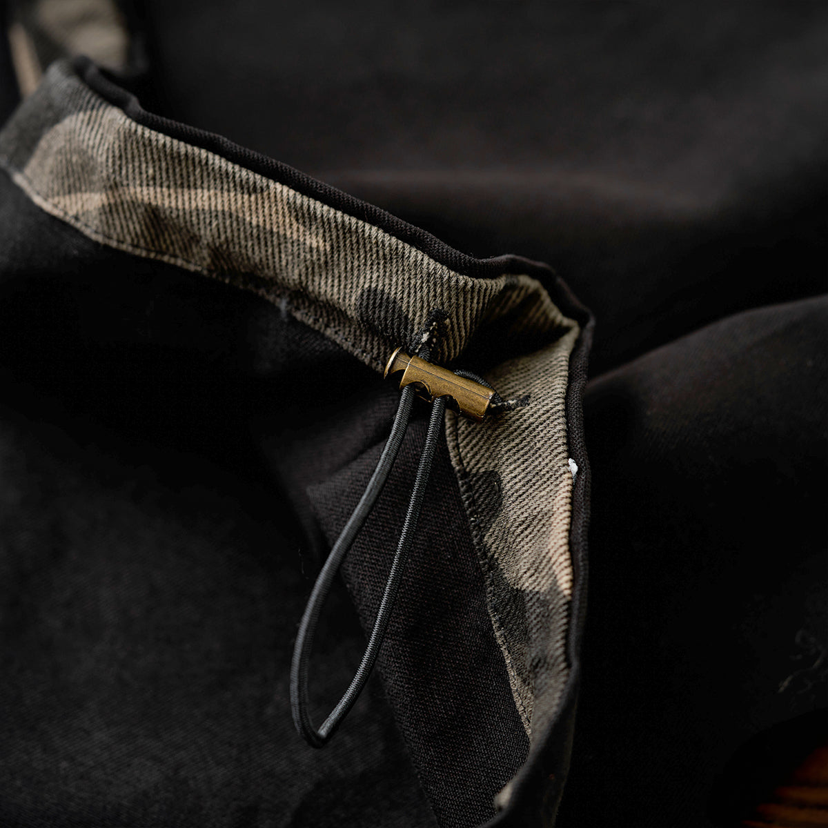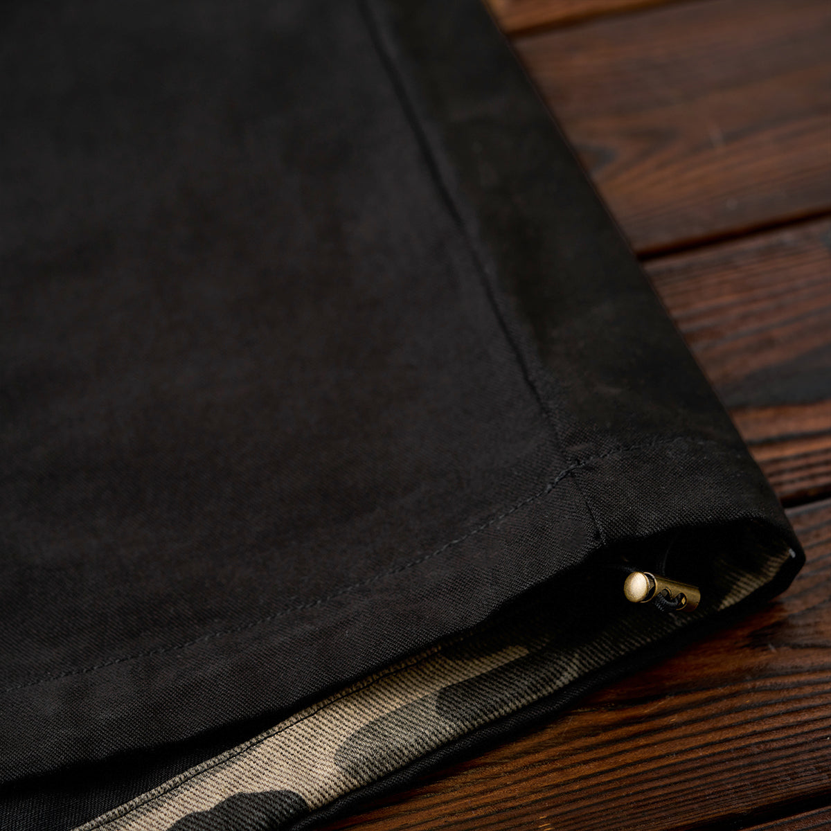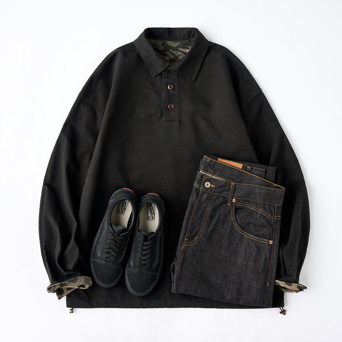 裏地カモ柄 裾ドローコード付きハーフボタンプルオーバー