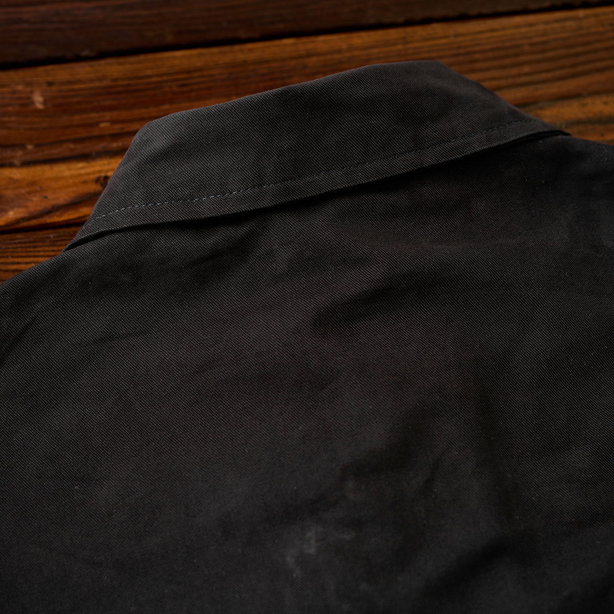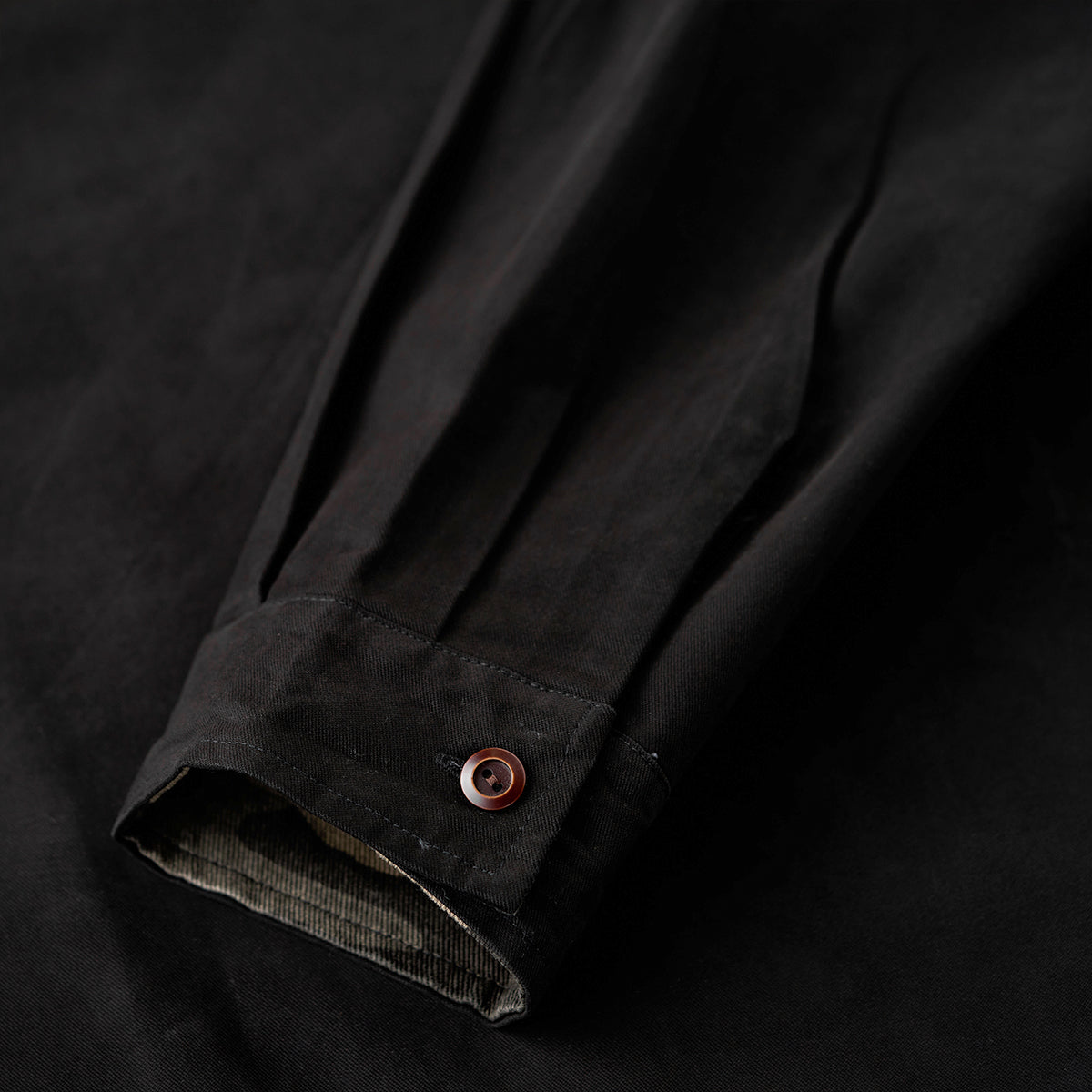 アシンメトリーポケット付き ヘリンボーン織りデニムワークシャツ