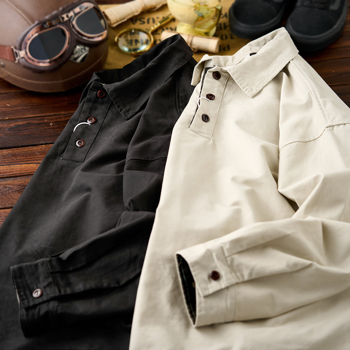 レッドアゲート調ボタン付き ピーチスキンオープンカラーシャツ