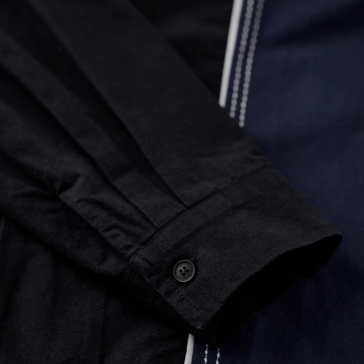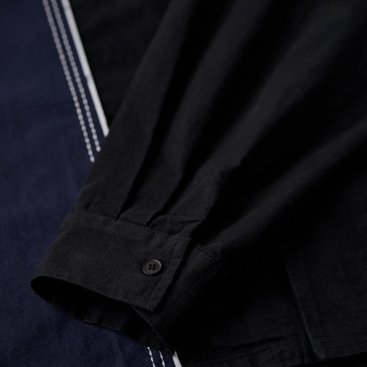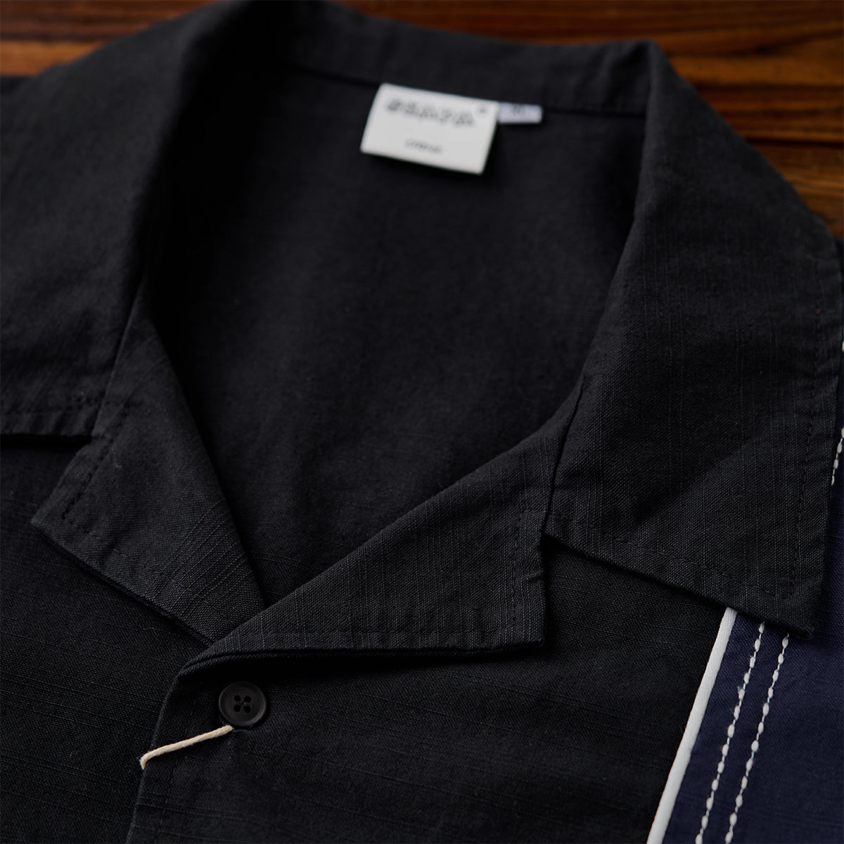 飾りステッチ ツートン配色切替オープンカラー長袖シャツ