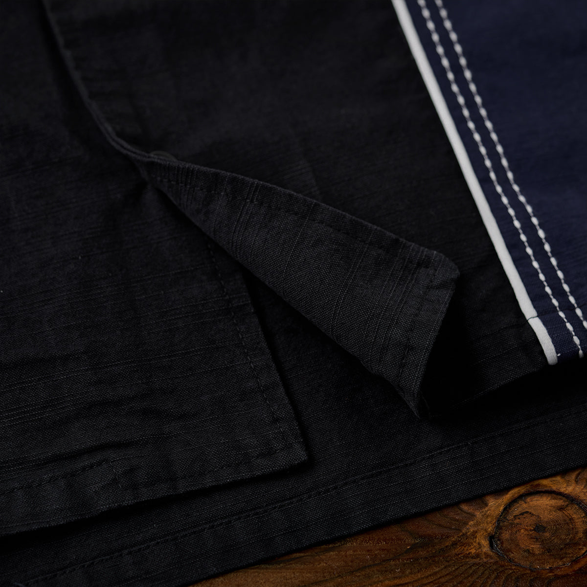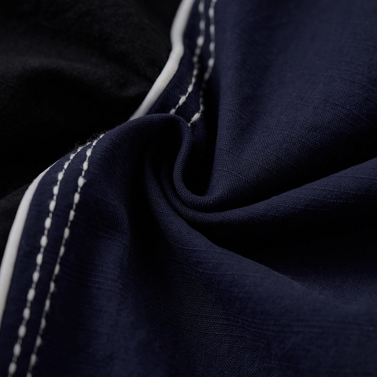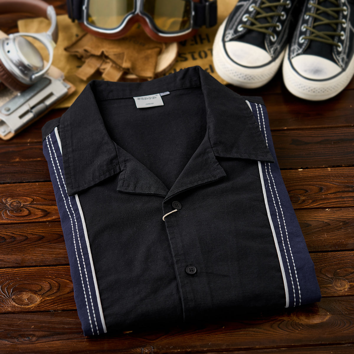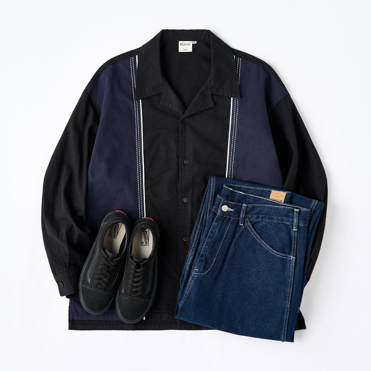 飾りステッチ ツートン配色切替オープンカラー長袖シャツ