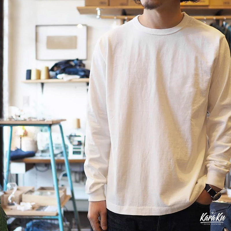 着込むほどに味わいを増すコットンの風合いも見もの、コットン100%素材は230gを誇り、耐久性に優れるのでガシガシ着られる。肉厚ゆえに透ける心配もなく、着ごたえもしっかり感じられる。