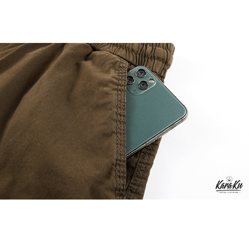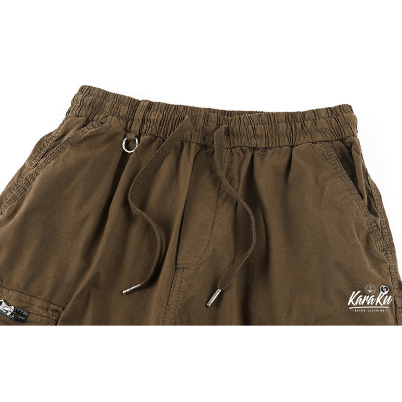 本アイテムは軍用パンツのディティールを取り入れながら、武骨さを軽減し、カジュアルに履けるのが人気のポイント。ウエストは総ゴムの楽ちんデザイン。締め付けることなくリラックスして履ける他、着替えも楽なのがポイントです。外側に通された紐で、お好みのフィット感を楽しめます!両サイドにビッグフラップポケットを二つ配置したのが特徴、機能性を更にUPさせ。裾には風が入らないようにゴムが通されており、足元がスッキリ見えます!普段使いはもちろん、キャンプやレジャー等、アクティブなシーンにもピッタリです。