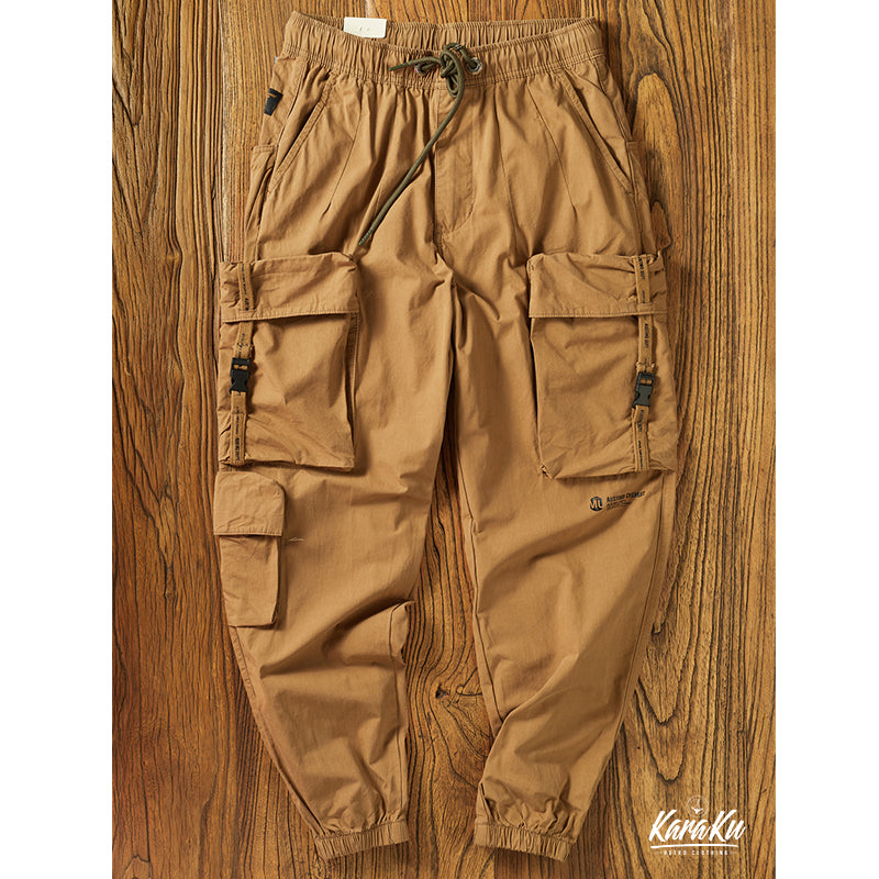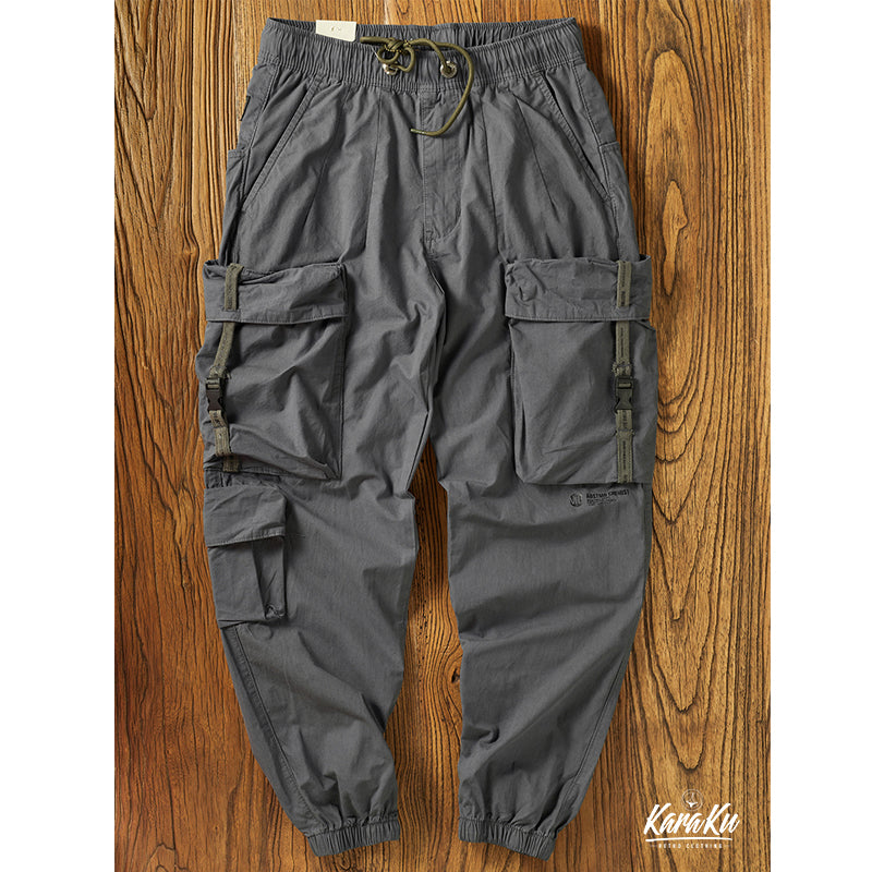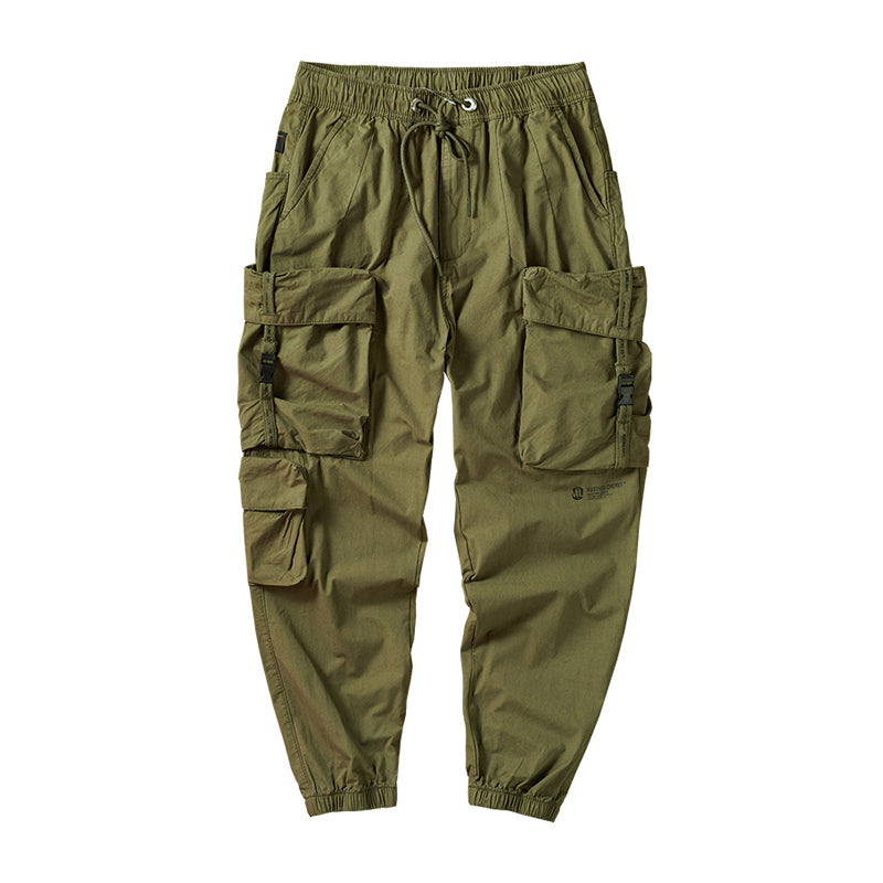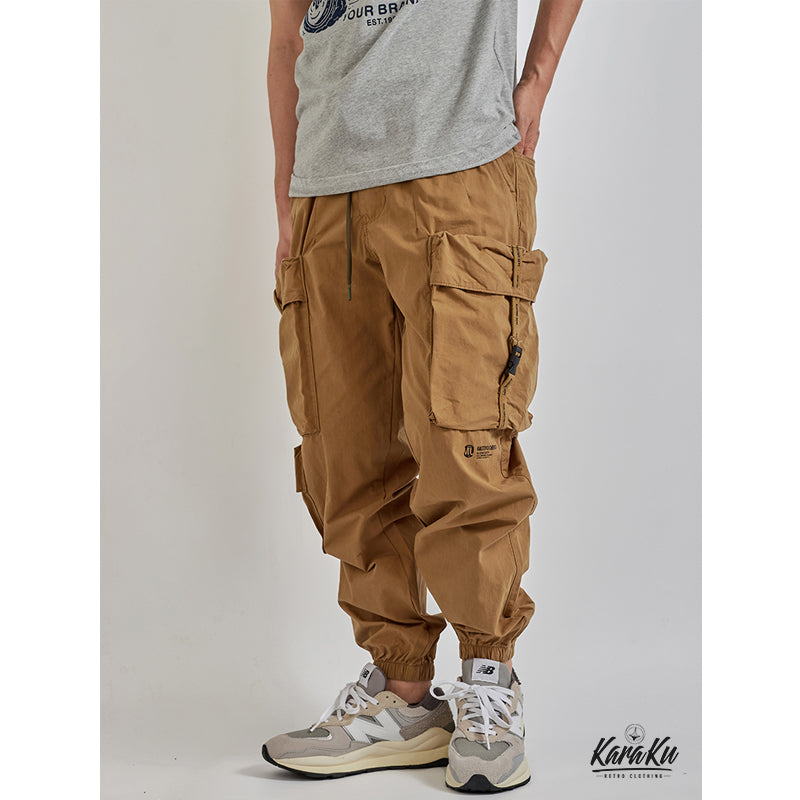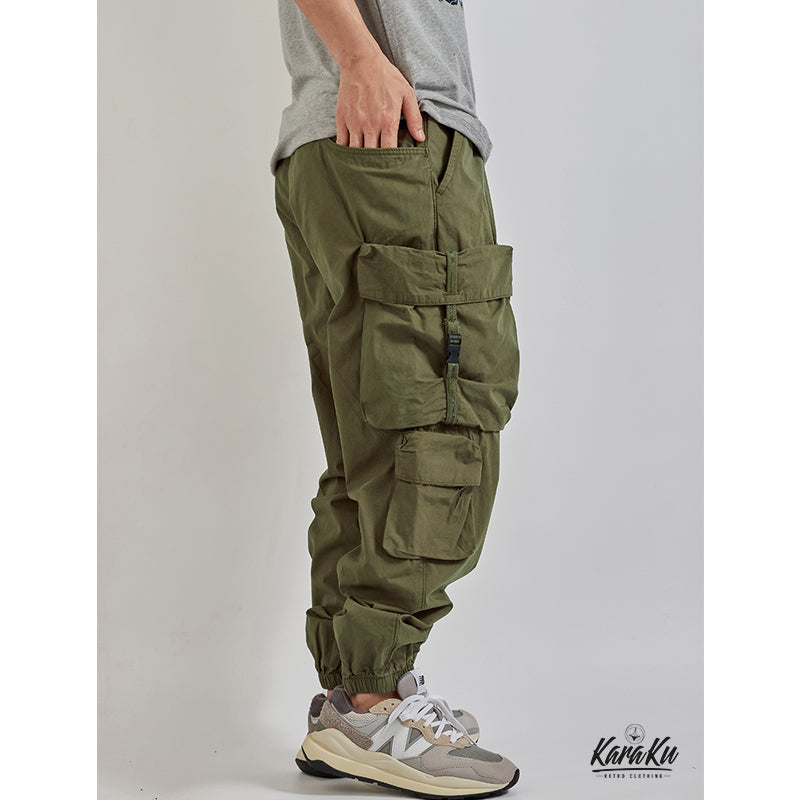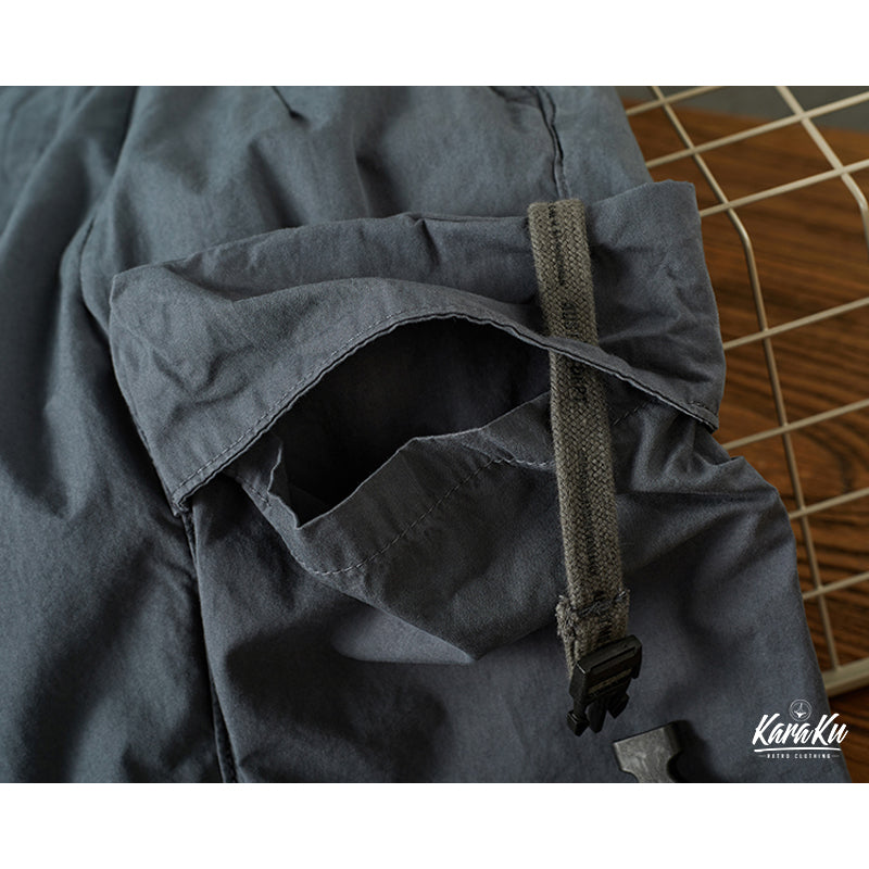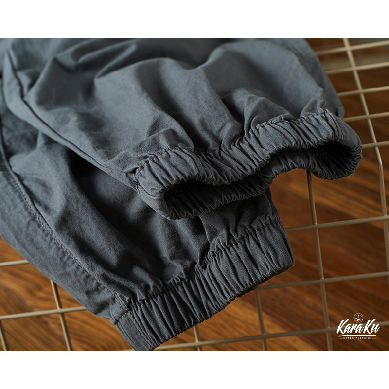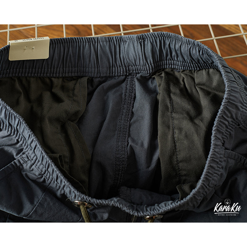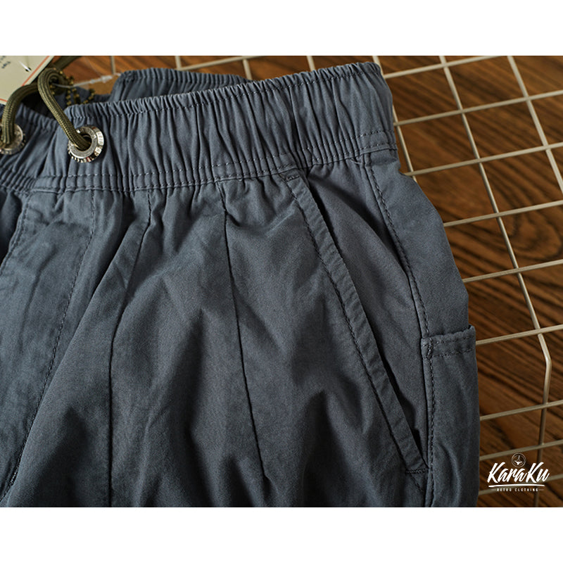 本アイテムは軍用パンツのディティールを取り入れながら、武骨さを軽減し、カジュアルに履けるのが人気のポイント。ウエストは総ゴムの楽ちんデザイン。締め付けることなくリラックスして履ける他、着替えも楽なのがポイントです。外側に通された紐で、お好みのフィット感を楽しめます!両サイドにビッグフラップポケットを三つ配置したのが特徴、機能性を更にUPさせ。裾には風が入らないようにゴムが通されており、9分丈の長さで動きやすく、足元がスッキリ見えます!普段使いはもちろん、キャンプやレジャー等、アクティブなシーンにもピッタリです。