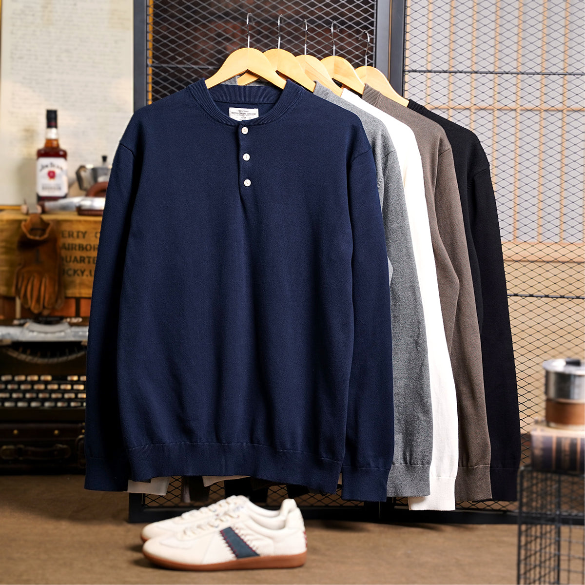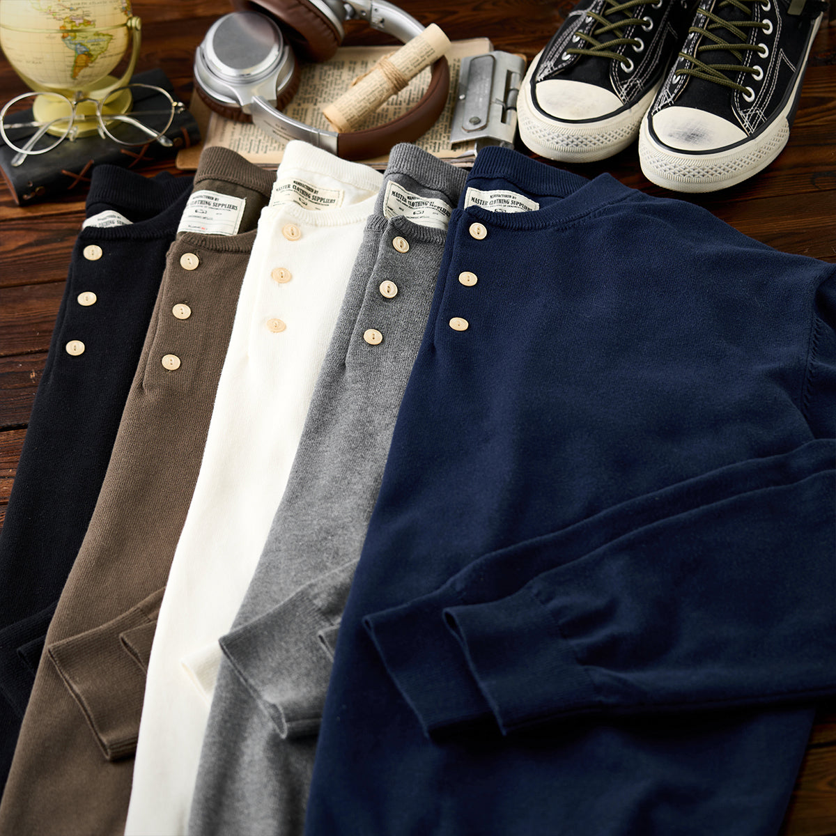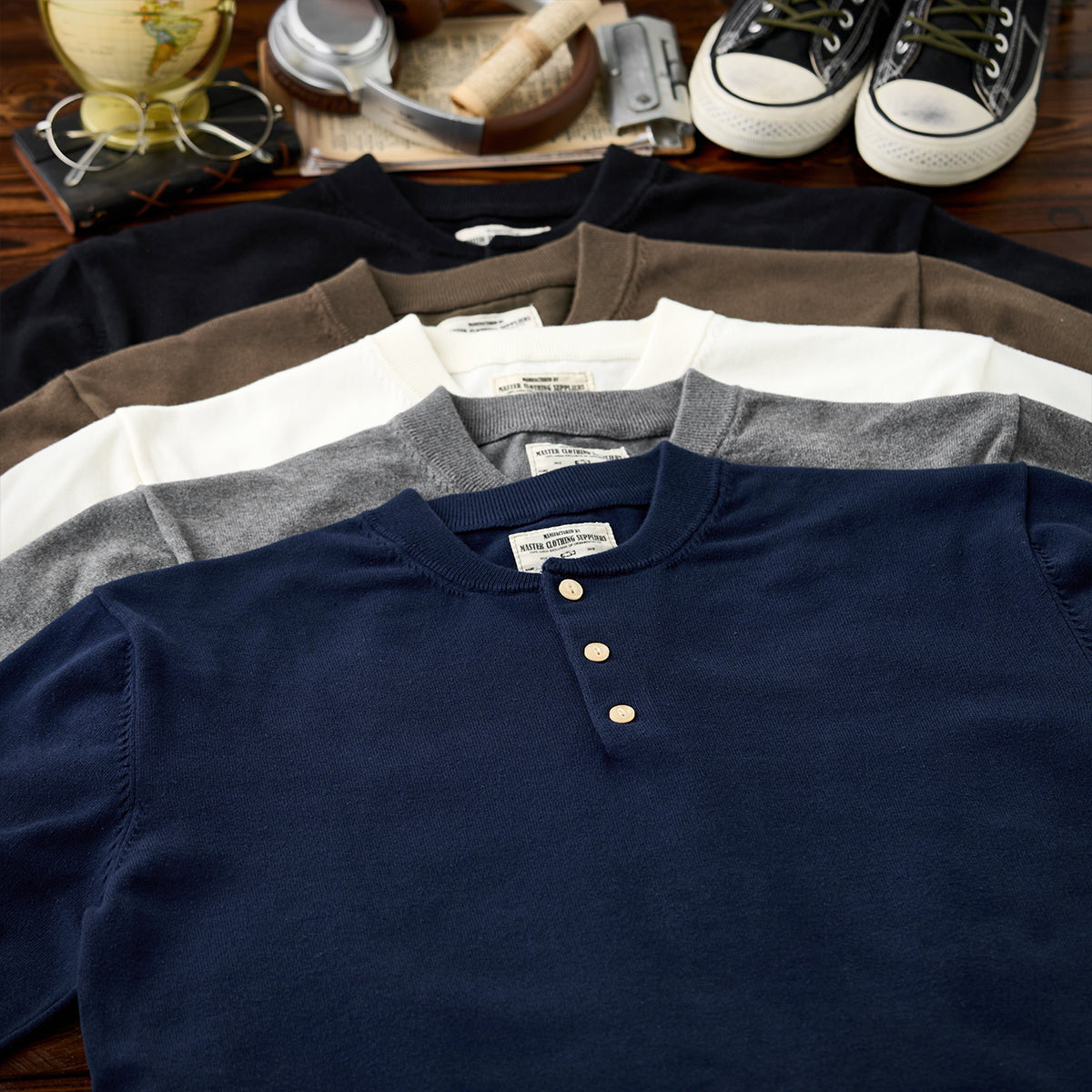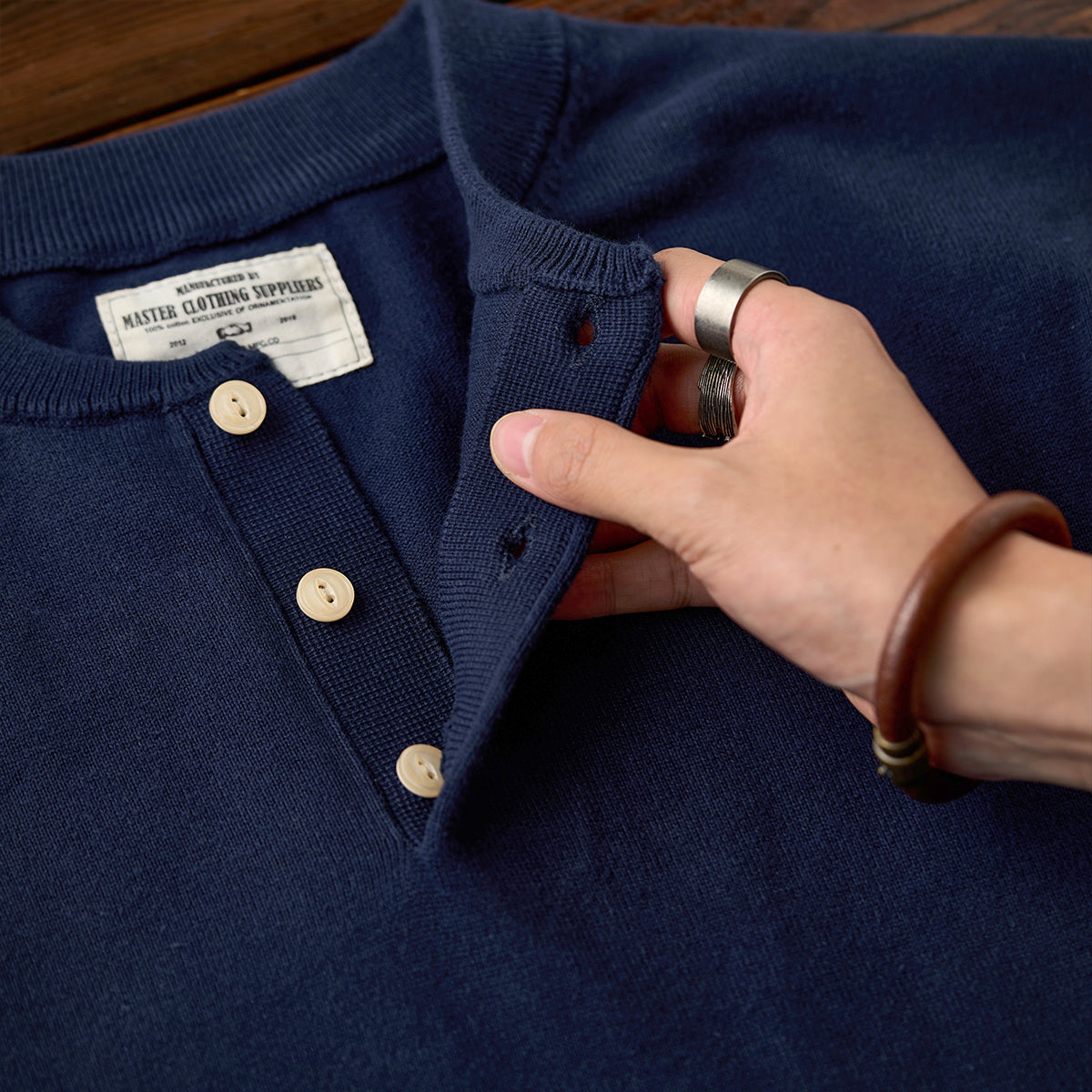 cleanfit シェルボタン付きコットンニット織りヘンリーTシャツ