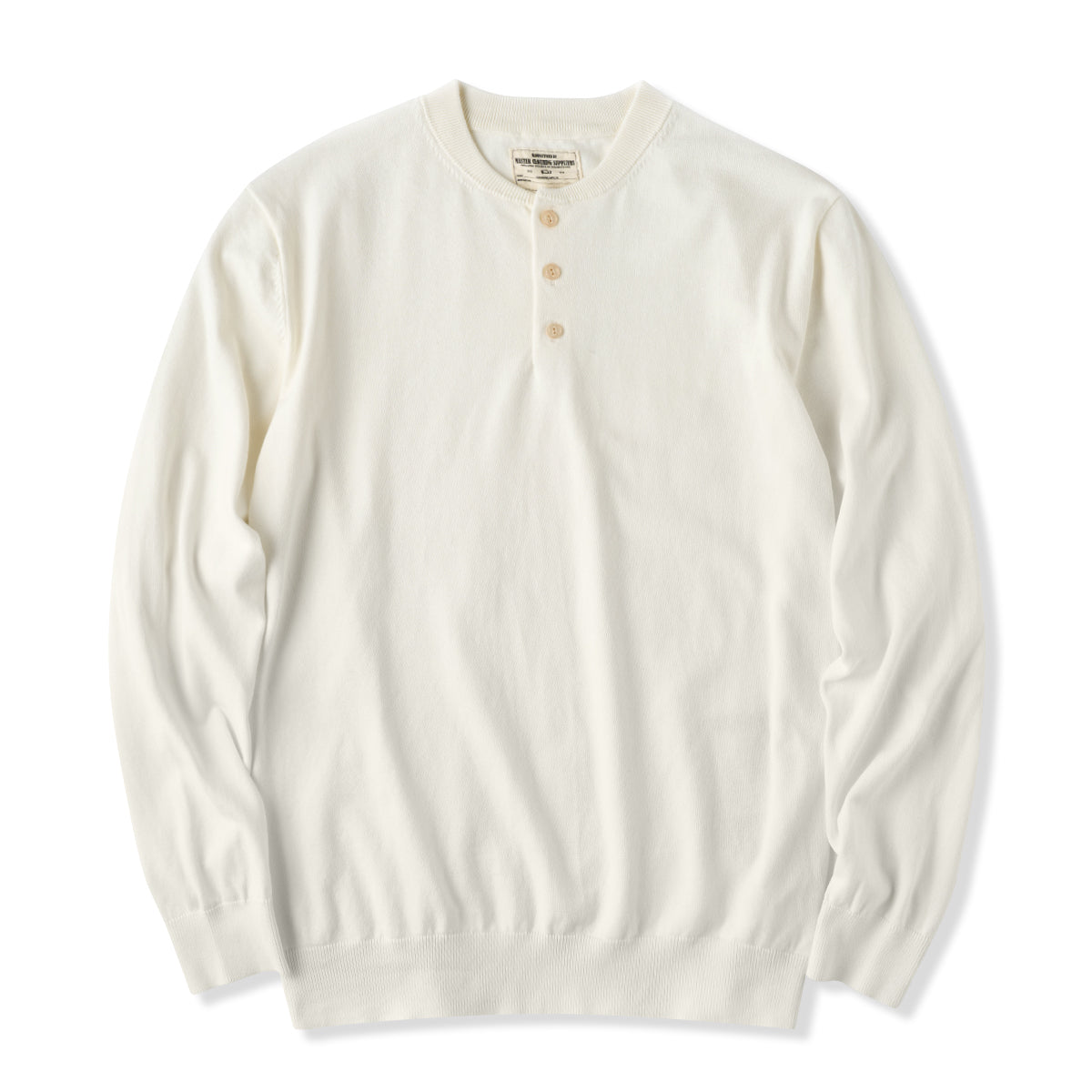 上品さとリラックス感を兼ね備えた“cleanfit”シリーズのコットンニットヘンリーTシャツ。程よく肉厚なニット織り素材を採用し、柔らかな肌触りと優れた伸縮性で快適な着心地を実現しました。フロントには艶やかなシェルボタンをあしらい、シンプルな中にも上質なアクセントをプラス。ナチュラルな光沢が大人の洗練された雰囲気を演出します。襟・袖口・裾にはリブを配し、シルエットをすっきりと引き締めながら、程よいフィット感をプラス。リラックス感の中にも清潔感のある印象に仕上げています。