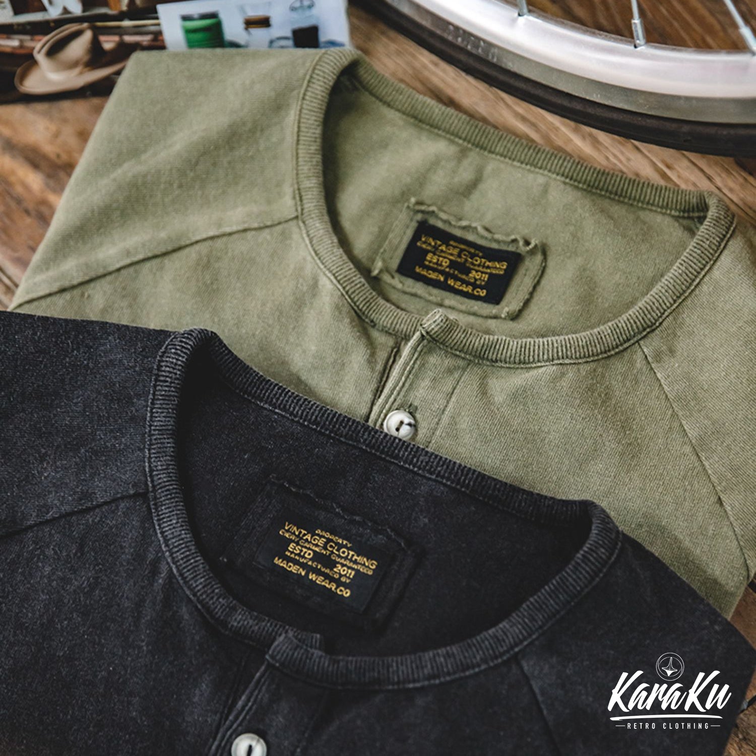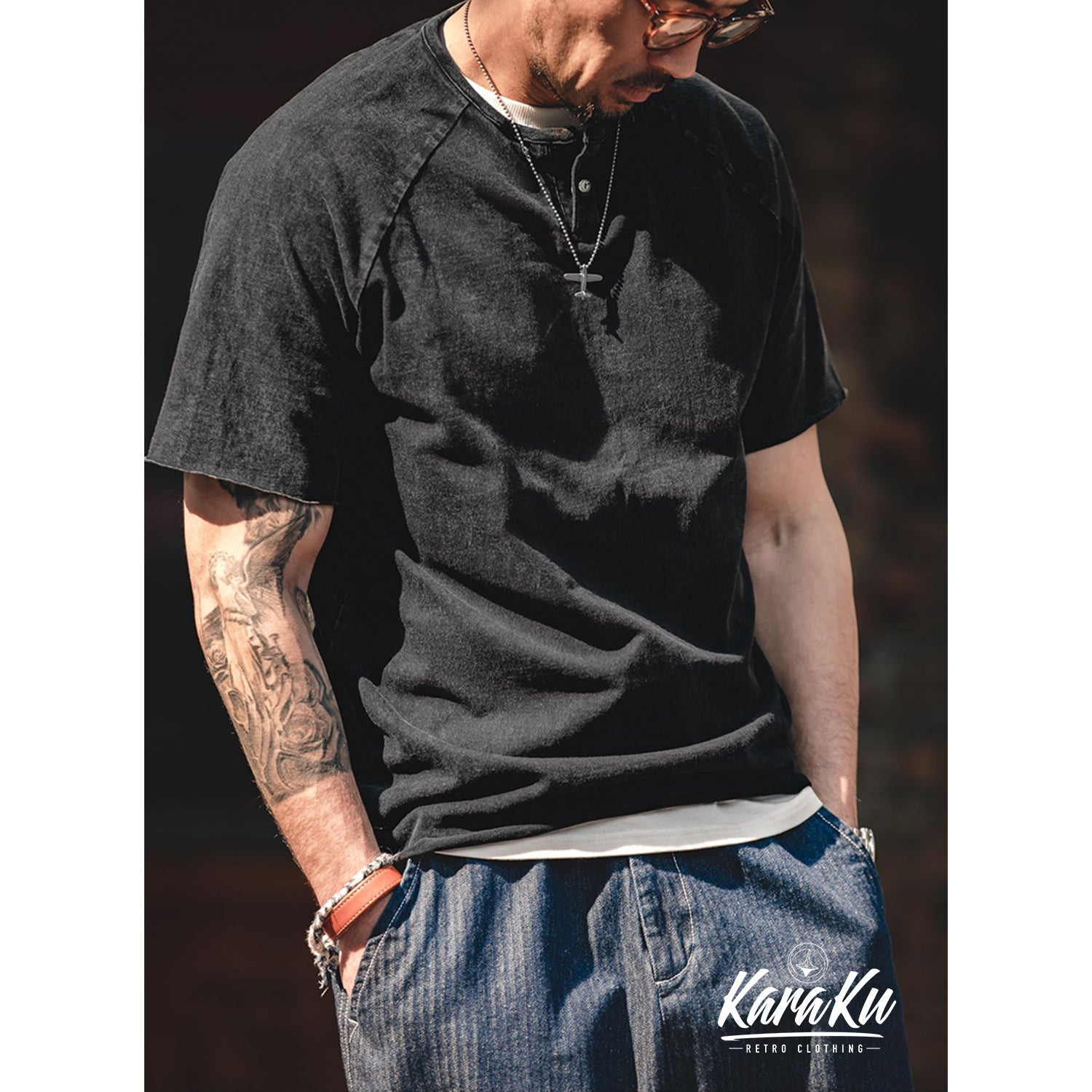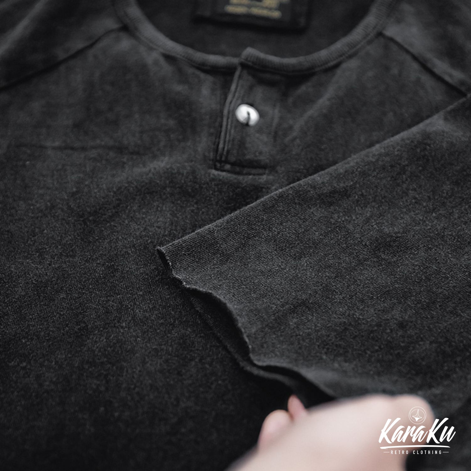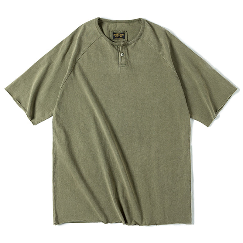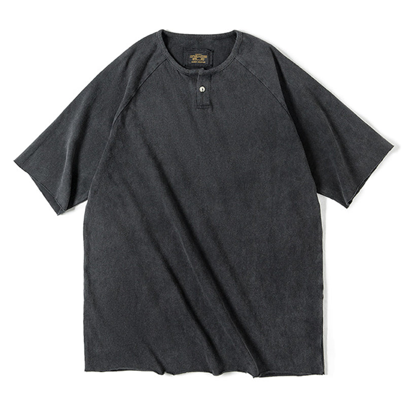 ウォッシュ加工 ヘンリーネックTシャツ