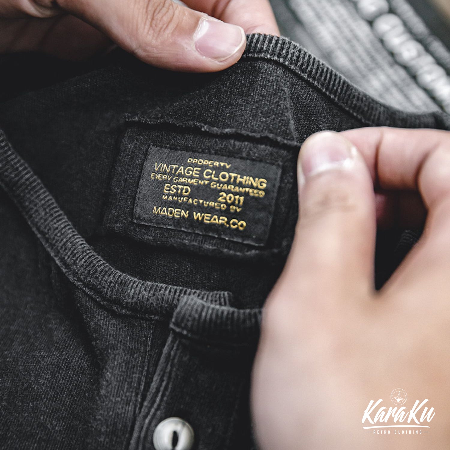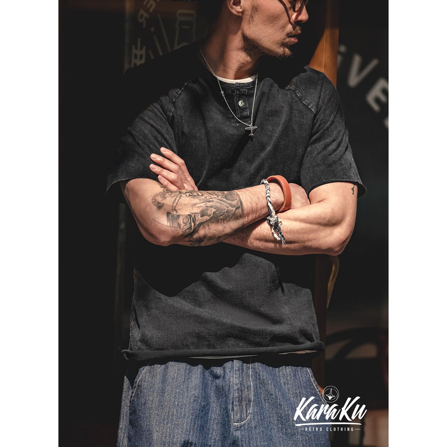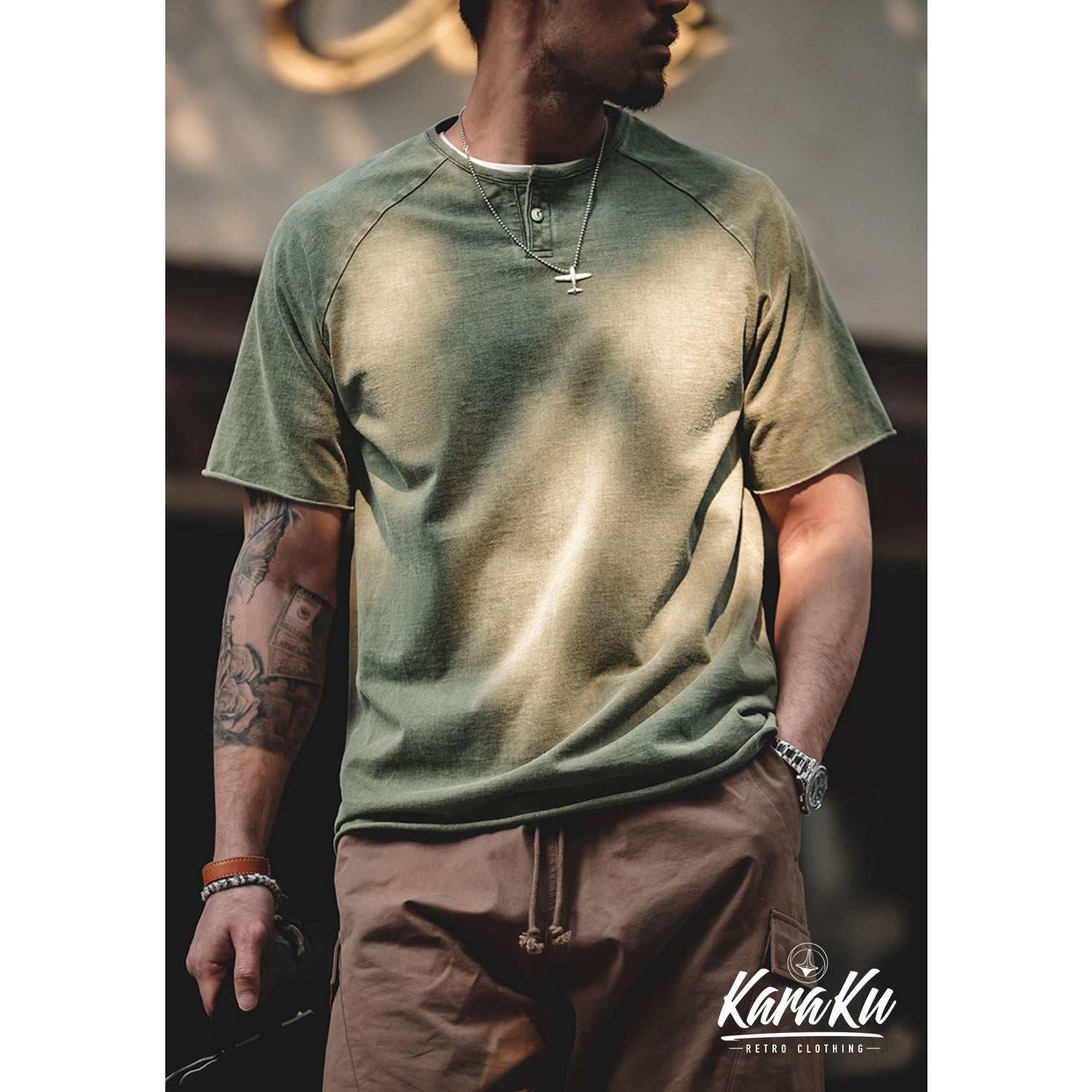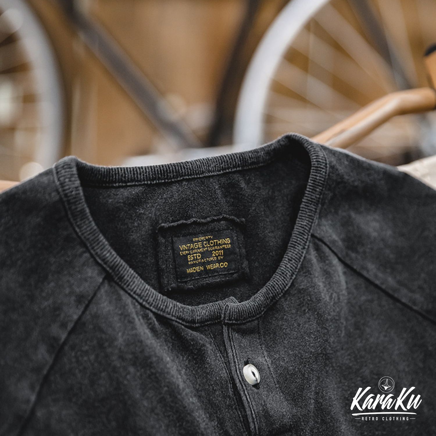 ウォッシュ加工 ヘンリーネックTシャツ