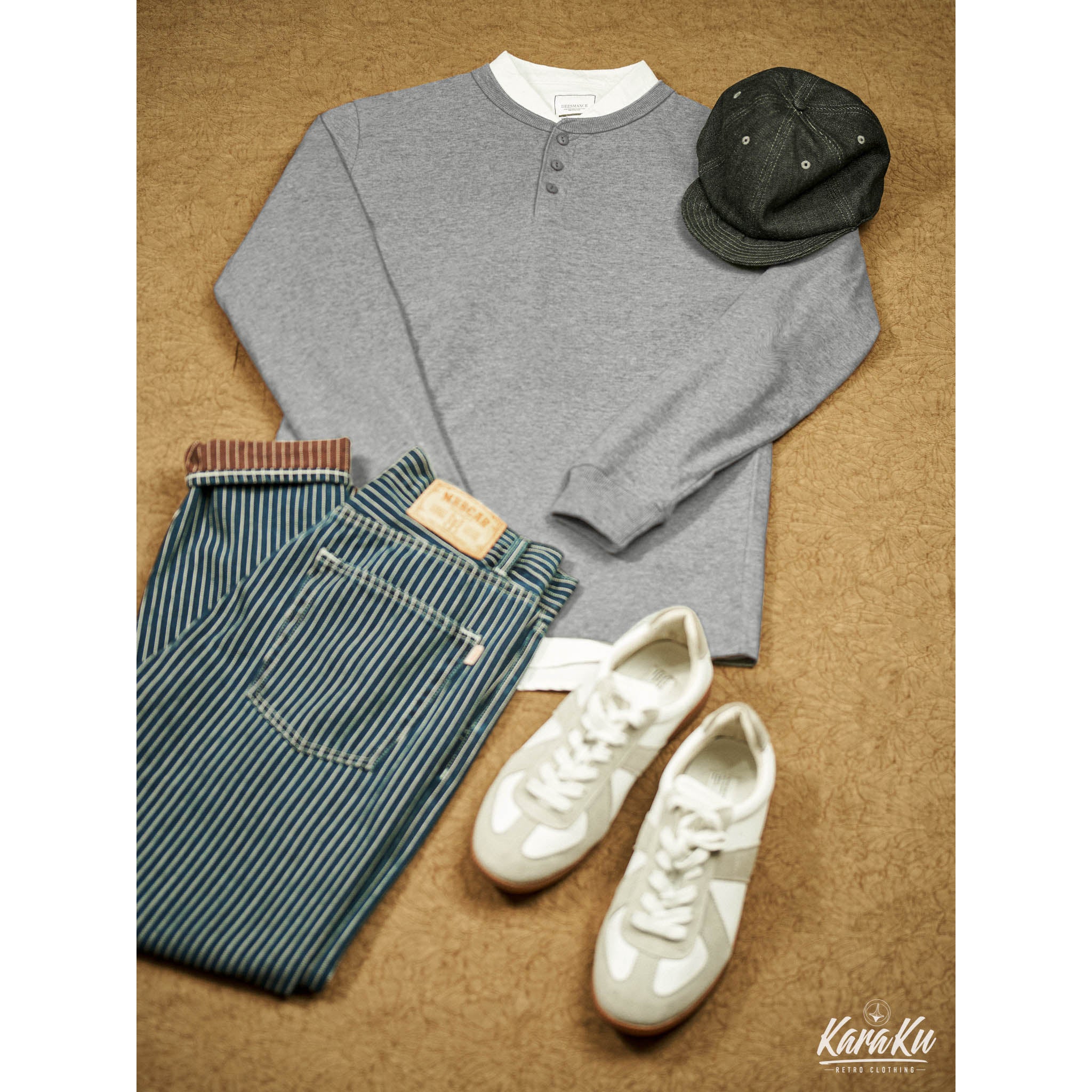 ベーシックで幅広い場面で重宝するヘンリーシャツが登場!クルーネックほどカジュアル過ぎず、シャツほどきっちりとし過ぎない絶妙なこなれ感こそ、このアイテム最大の持ち味。加えて、ボタンの開閉によって自在にニュアンスを調整できるのも大きなメリットです。シンプルで着回しやすい無地タイプから選べる5カラーをご用意しました。 サイズ感は平均的な日本人サイズに仕上げている為、年代を問わず、またインナーとしても使えるので複数枚買いや色違いでの購入もおすすめです。