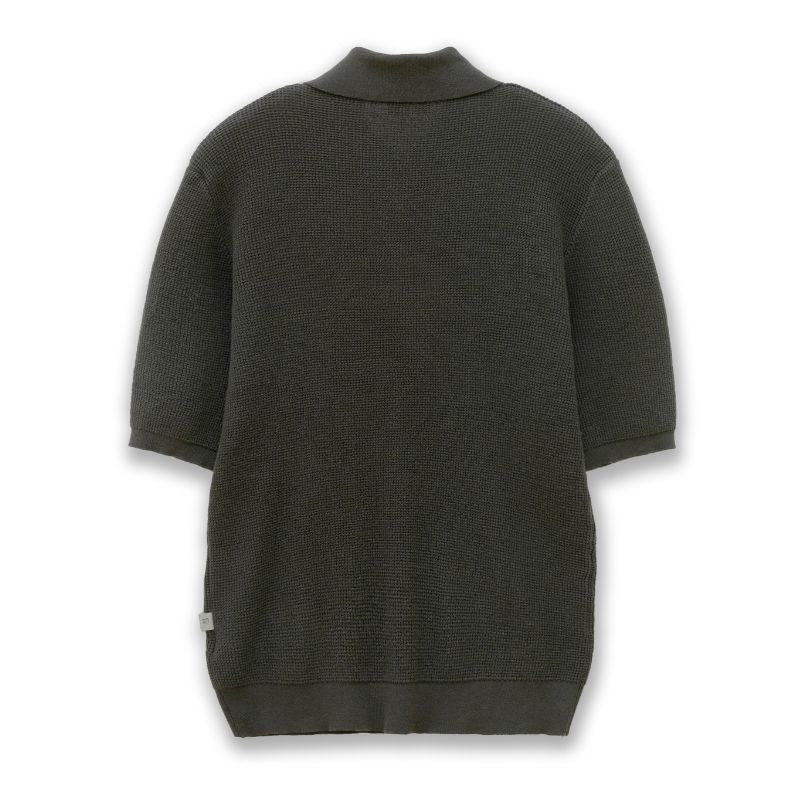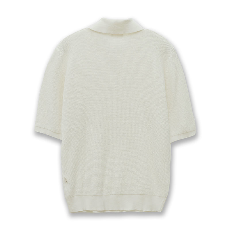 凹凸のある編地が肌への纏わり感を軽減してくれ、ニットならではの軽さと通気性の良さが魅力。