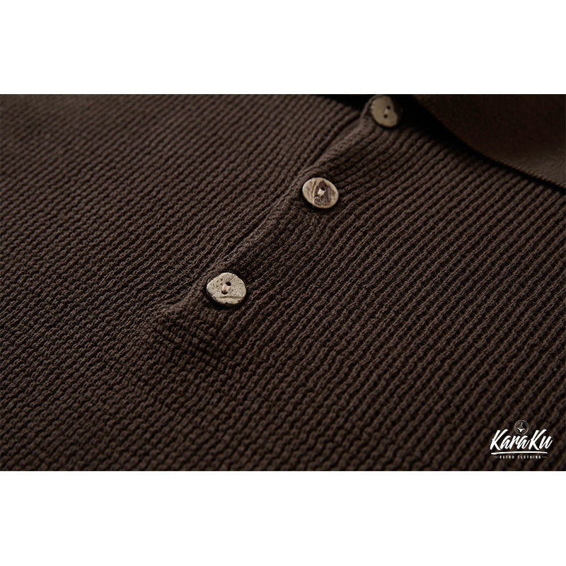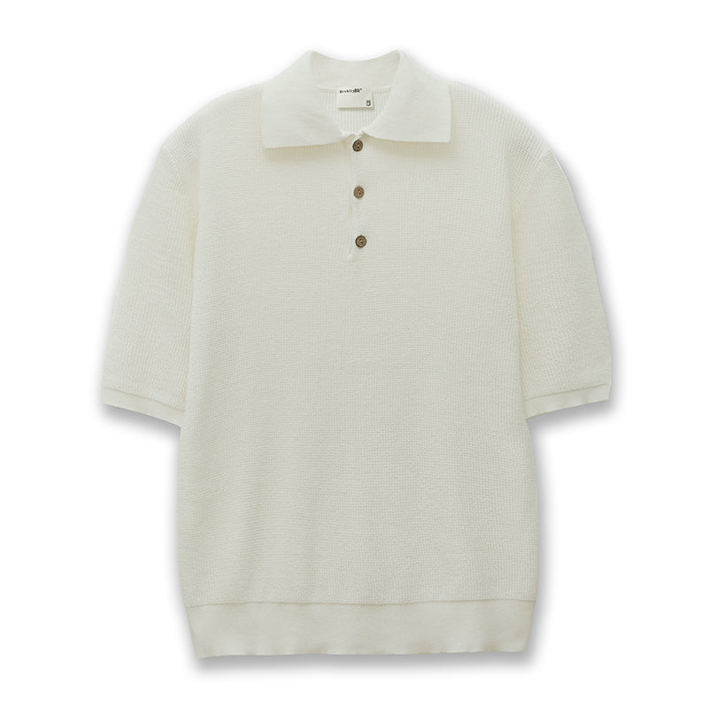 伝統的なポロシャツの襟を採用、襟は折り返して立てることもでき、2ボタンが配置され、首元の開き具合を調節でき、カジュアルな雰囲気を演出。