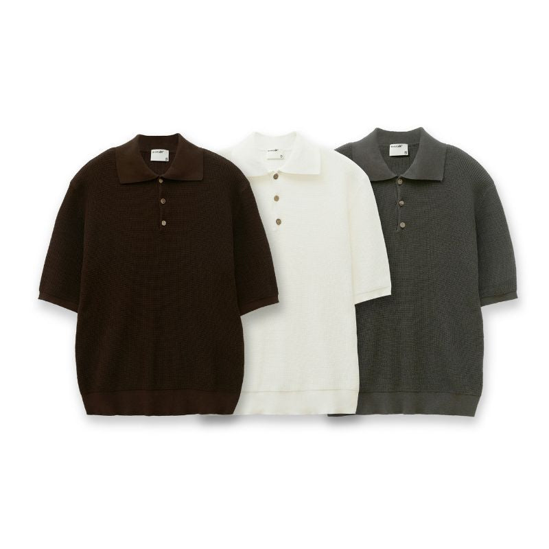 無地3色 コットンニットポロシャツ