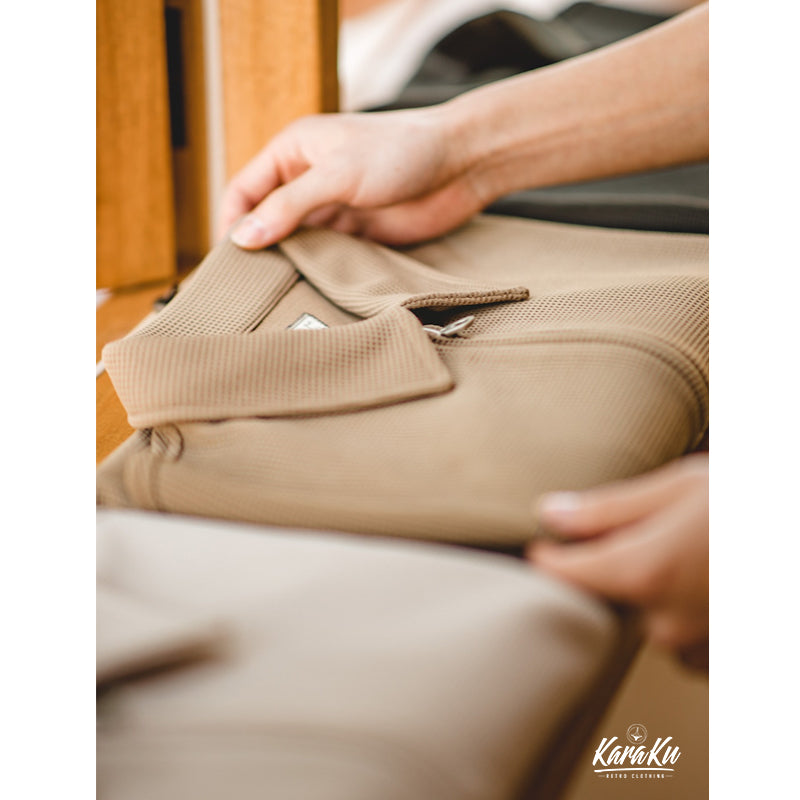 ポリエステルをメインに使用、形状記憶性が高く、耐摩耗性に優れている、シワができにくくお手入れも簡単。
