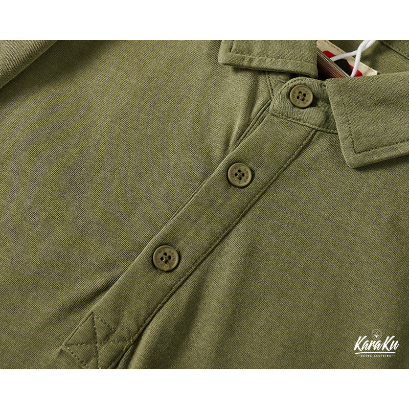 クルーネックほどカジュアル過ぎず、シャツほどきっちりとし過ぎない絶妙なこなれ感こそ、このポロシャツ最大の持ち味。ボタンの開閉によって自在にニュアンスを調整できるのも大きなメリットです。ウォッシュド加工でヴィンテージ感が引き立ち、いい具合に褪せた風合いがアメカジスタイルに呼ぶ。裾にリブが入りで、タックインしなくても腰にフィットし、だらしなく見えません。シンプルで着回しやすい無地タイプから選べる3カラーをご用意しました。 サイズ感は平均的な日本人サイズに仕上げている為、年代を問わず、またインナーとしても使えるので複数枚買いや色違いでの購入もおすすめです。
