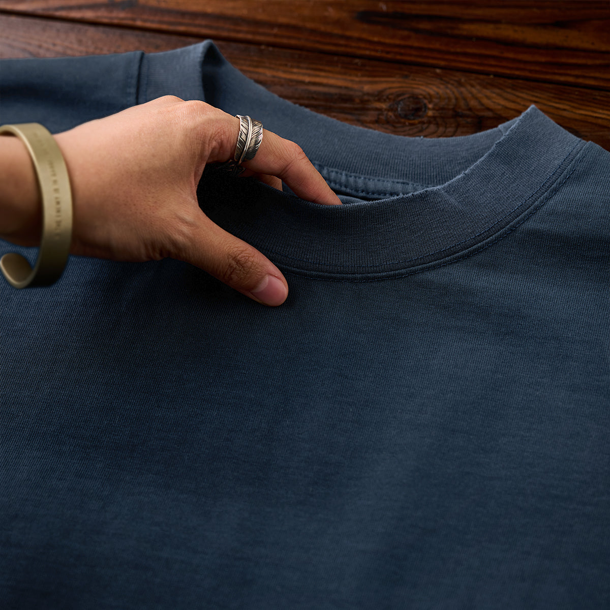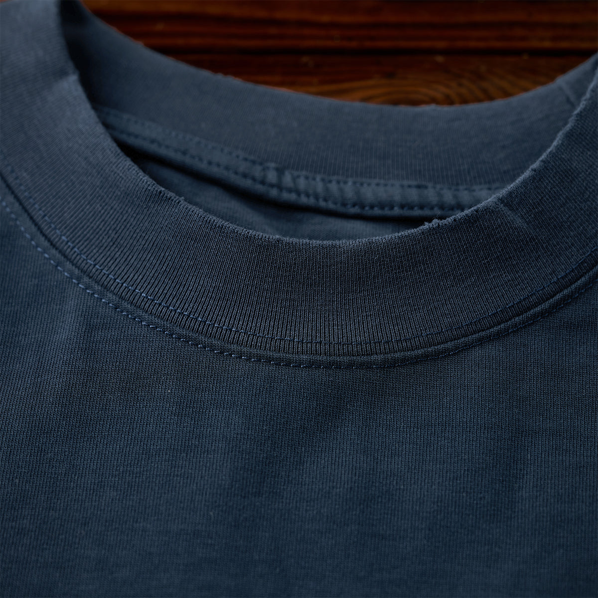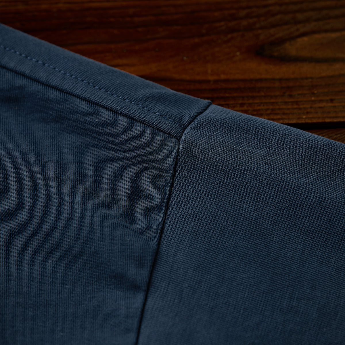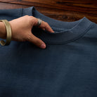 首元はリブ仕様のクルーネックで、適度な伸縮性があり、シンプルかつ快適なデザイン。程よい高さがあり、首元の形をきれいに見せる工夫がされています。