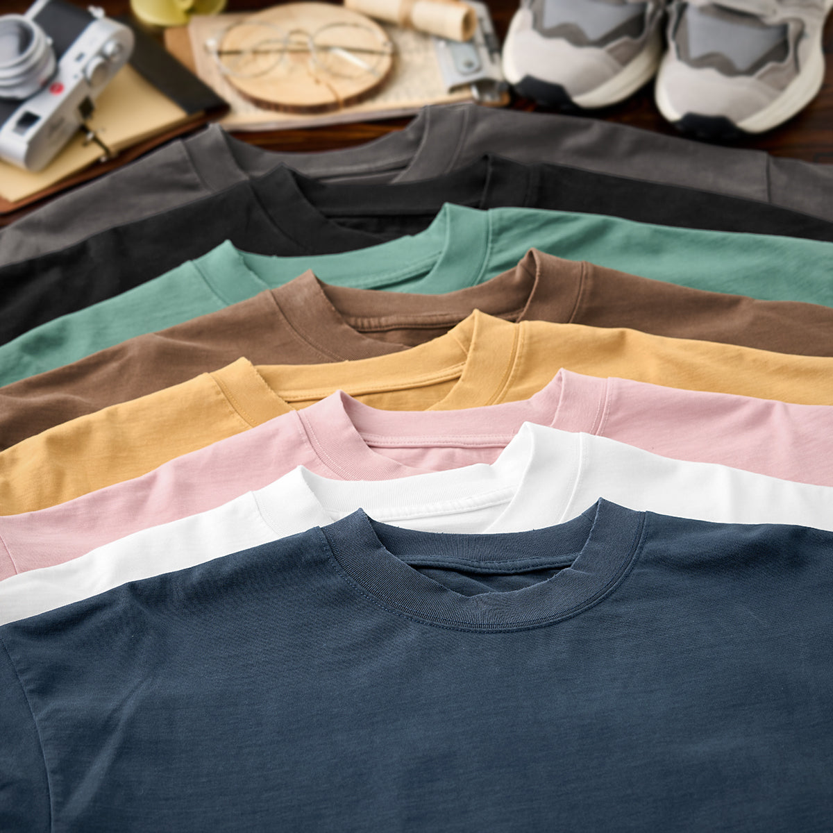 8色展開で、個々の好みに合わせた選択が可能。ベーシックカラーからトレンドのアースカラーまで多岐にわたります。ピンクやグリーンなどの柔らかい色味もあり、カジュアルな場面や春夏シーズンに最適。