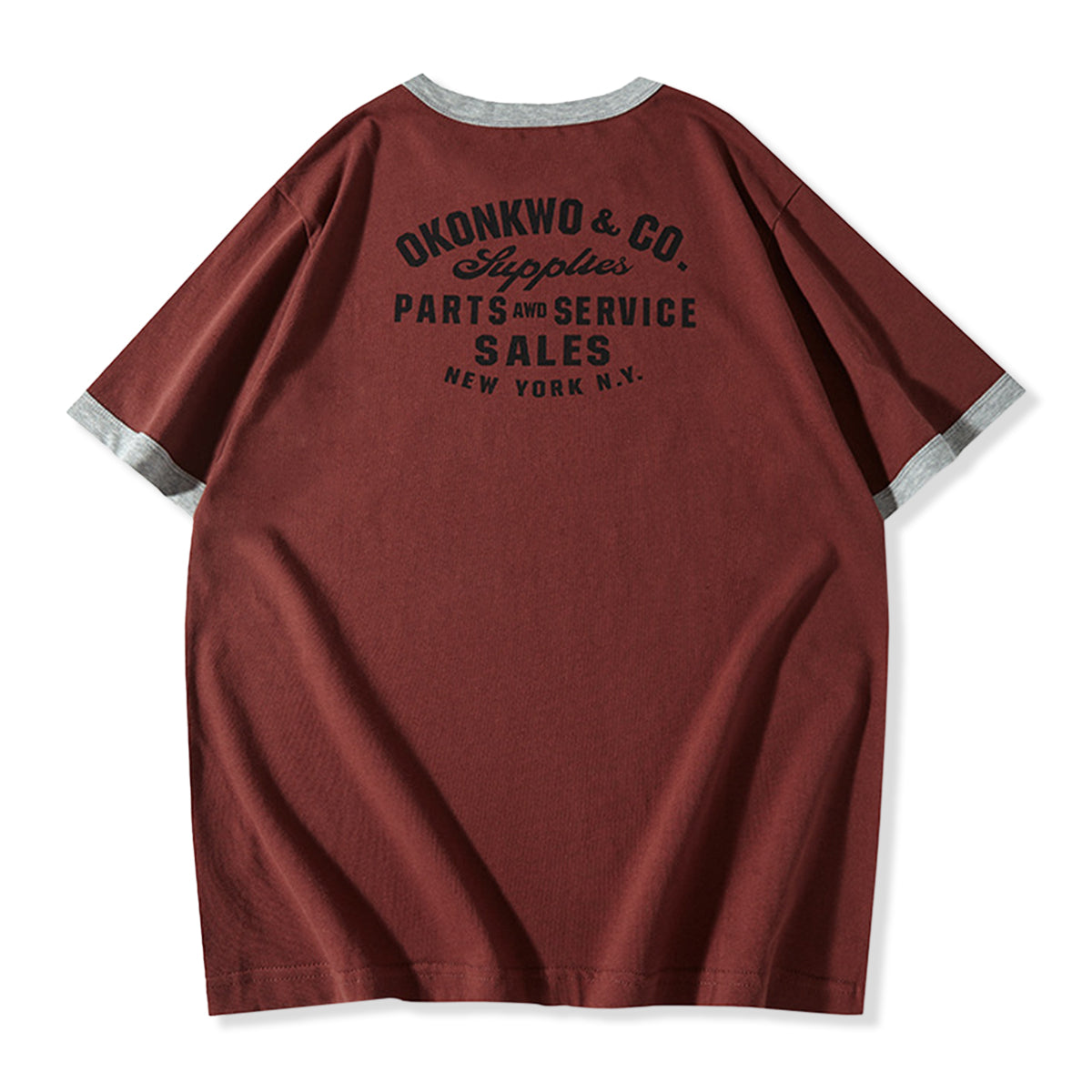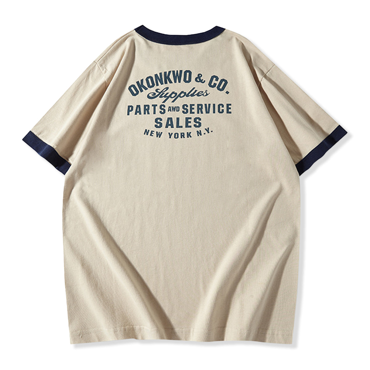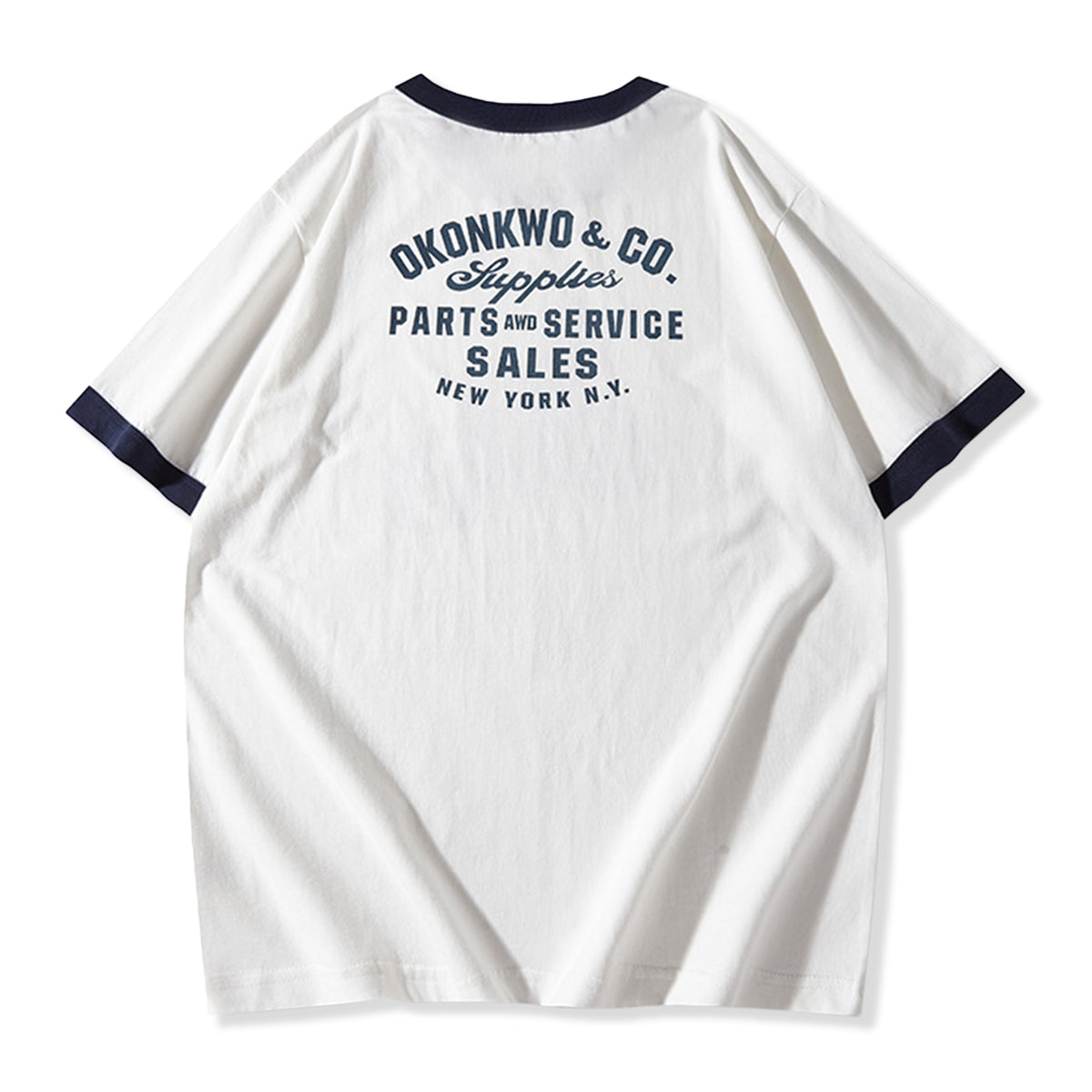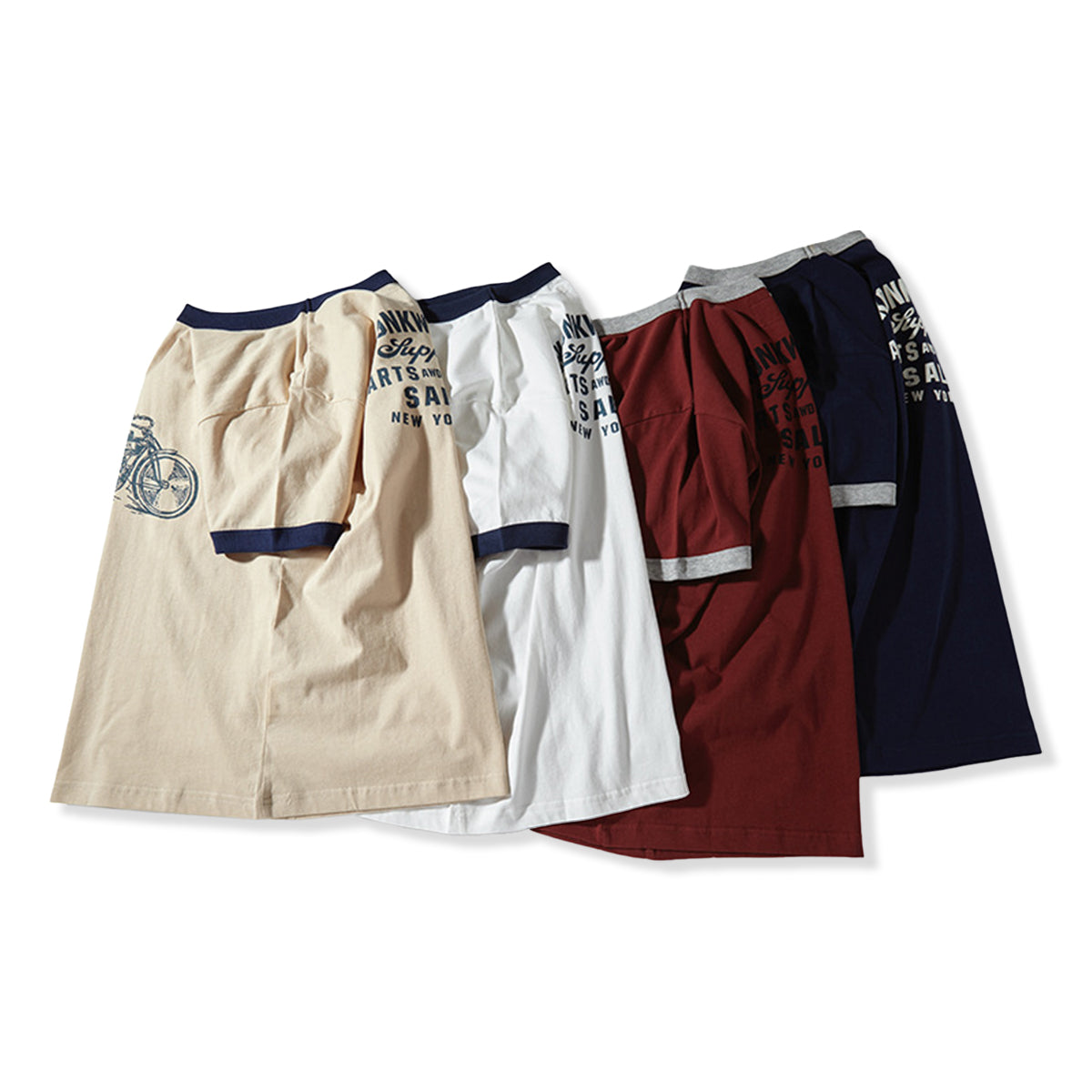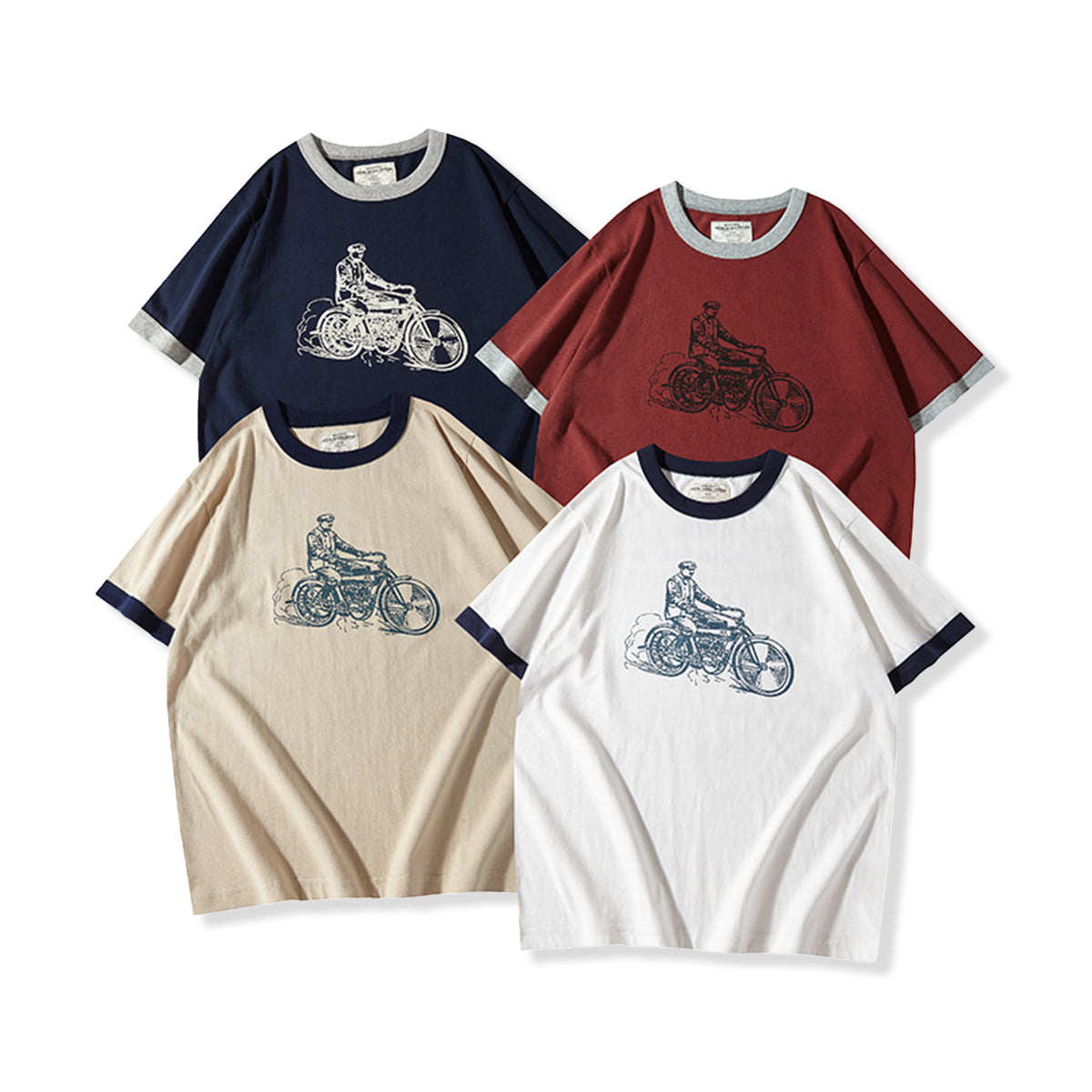 210gヘビーウェイト 手描き風バイクプリントリンガーTシャツ