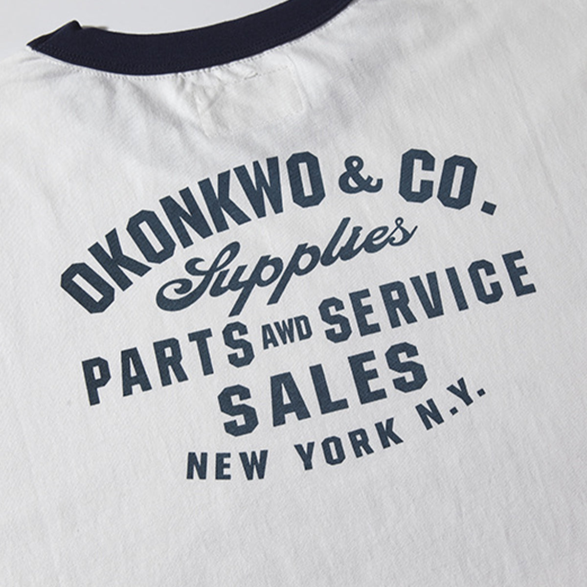 バックにはサンセリフ体が使われて、工業的・無骨な雰囲気を醸し出しています。テキストがアーチ状に配置されて、デザインの視覚的な中心を形成しています。